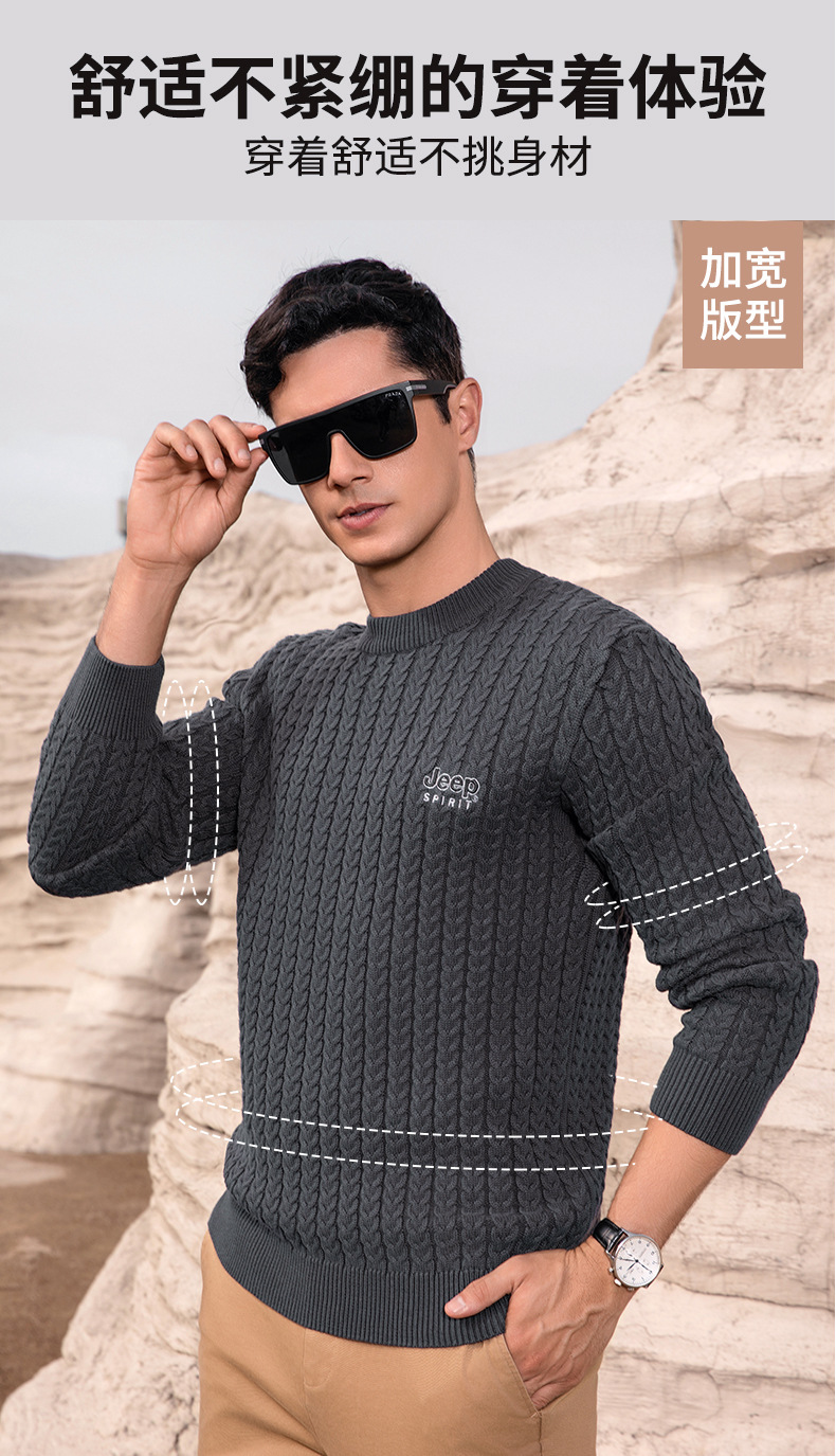 지프 스피릿 겨울 두꺼운 따뜻한 라운드 넥 풀오버 스웨터 남성용 2023 새로운 패션 트렌드 느슨한스토어 가기