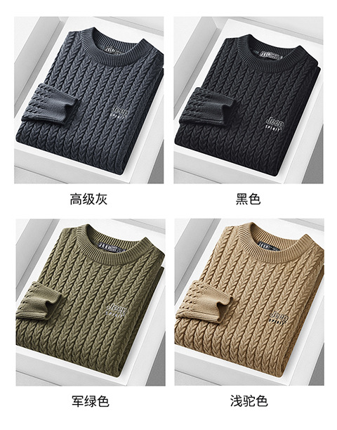 지프 스피릿 겨울 두꺼운 따뜻한 라운드 넥 풀오버 스웨터 남성용 2023 새로운 패션 트렌드 느슨한