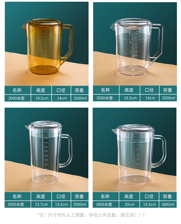 아크릴 PC 냉수병 주스 묶는 냄비 플라스틱 냉수병 내열성 대용량 물병 시판 찻주전자 측정 컵