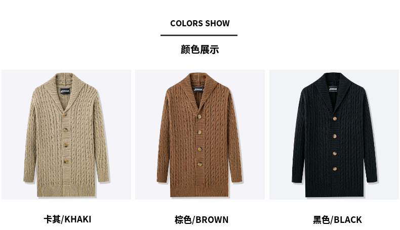 대외 무역 크로스 보더 남성복 유럽 및 미국 남성 중형 및 롱 니트 스웨터 두꺼운 바늘 트위스트 플라워 카디건 모직 코트 SY0107스토어 가기