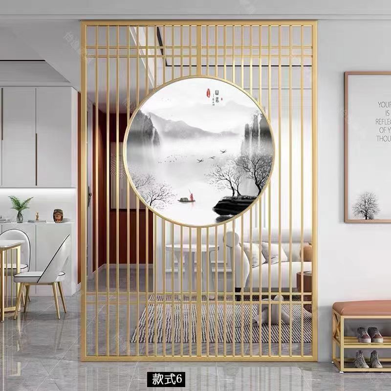 현대 새로운 중국 스타일 화면 스테인레스 스틸 입구 현관 철제 파티션 거실 음영 꽃 격자 무늬 빈티지 식당 조명 럭셔리