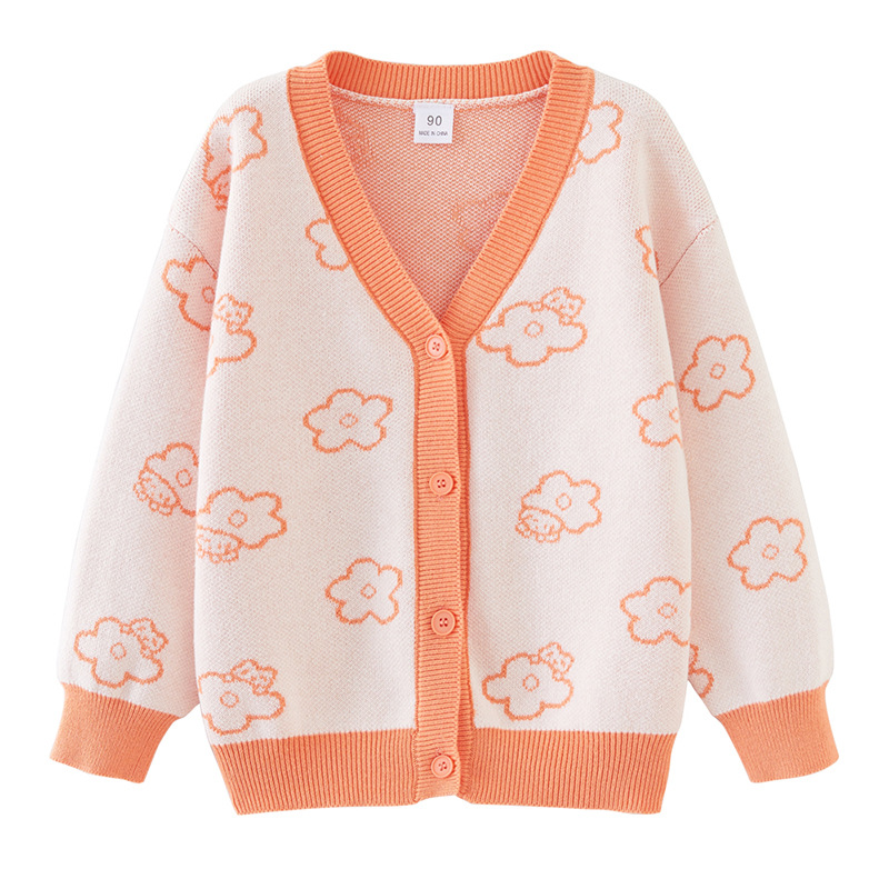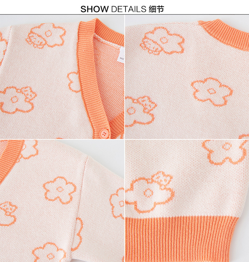 宝贝名称 :  V领花朵提花针织开衫女童外套