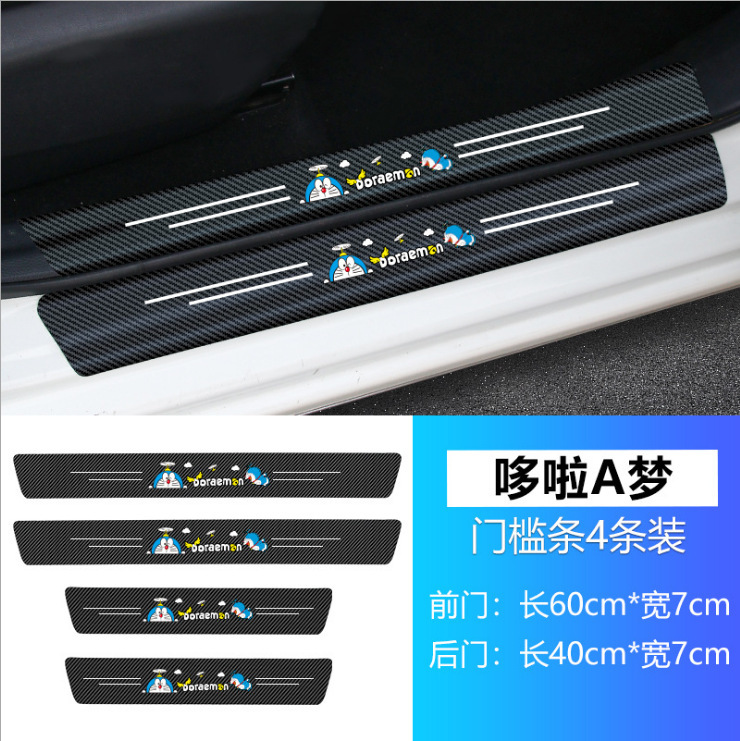 크로스 보더 자동차 임계 바 짓밟기 방지 비파괴 만화 귀여운 탄소 섬유 패턴 자체 접착 자동차 보호 패치 스크래치 방지스토어 가기