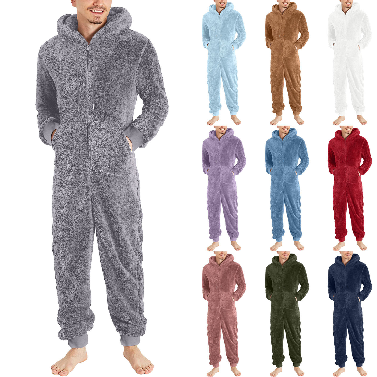 2023 재고 크로스 국경 베스트 셀러 남성 연인 지퍼 따뜻한 플러시 점프 슈트 따뜻한 잠옷 머리카락의 세대스토어 가기