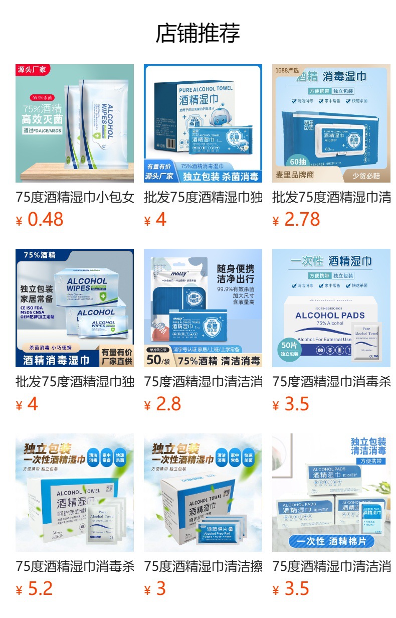75도 알코올 물티슈 개별 포장 일회용 휴대용 청소 살균 스크린 가정용 손 닦는 소형 물티슈스토어 가기