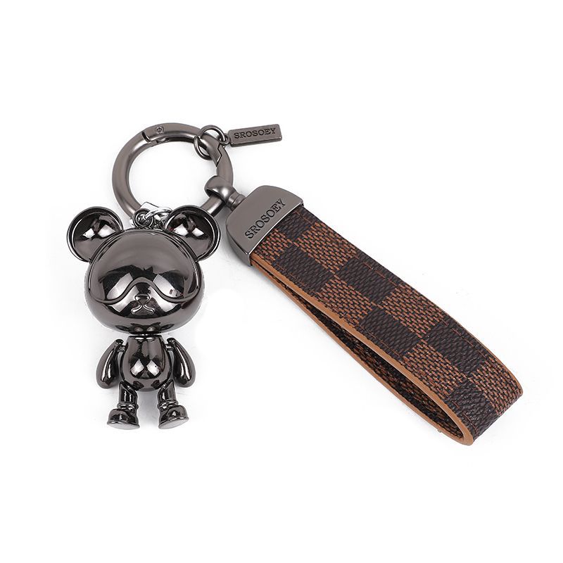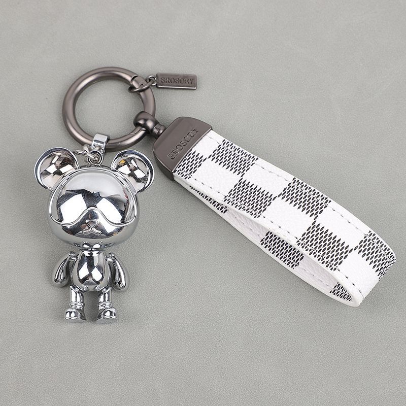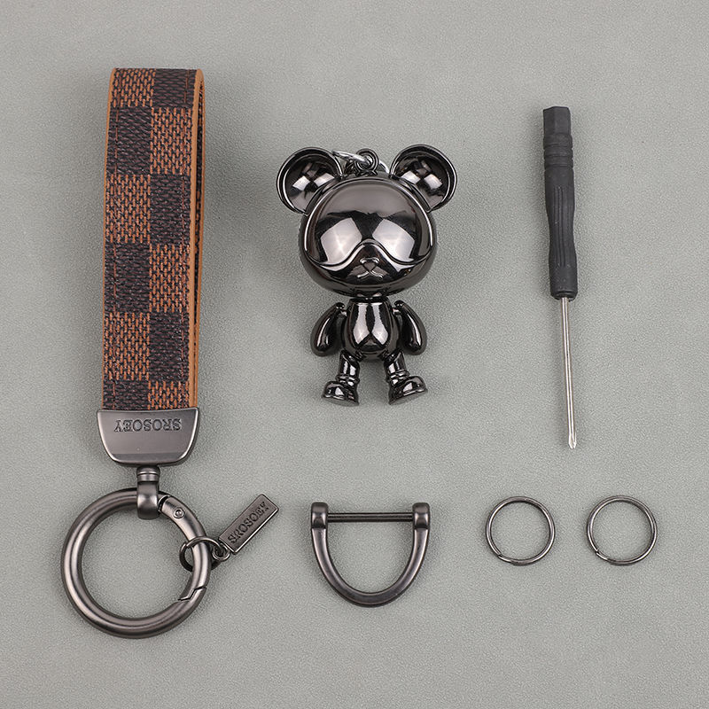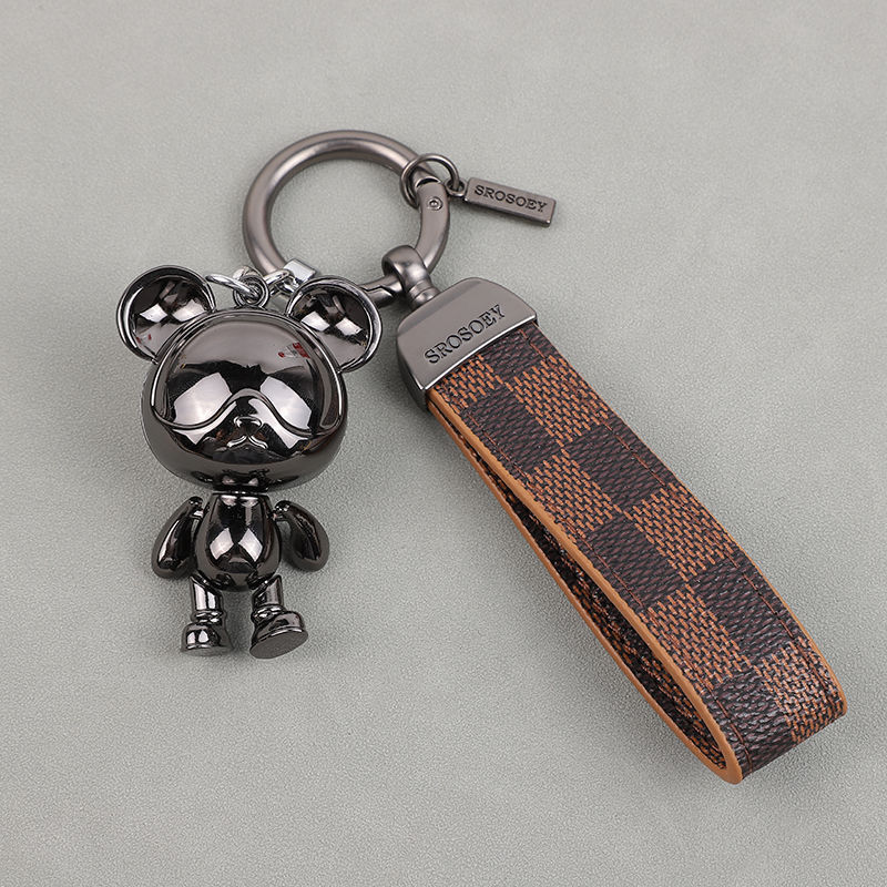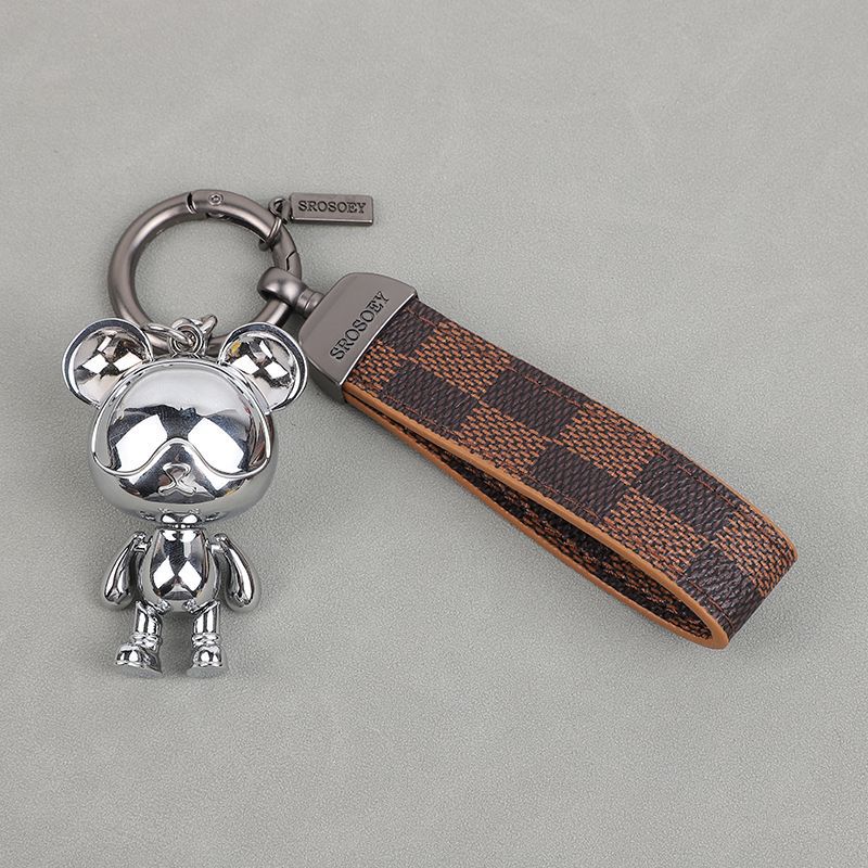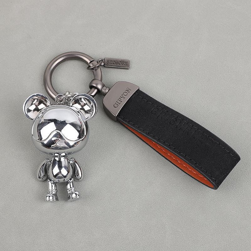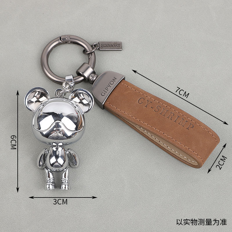만화 귀여운 곰 금속 열쇠 고리 남자와 여자의 자동차 열쇠 고리 펜던트 고급 가죽 밧줄 학교 가방 매달려 유행스토어 가기