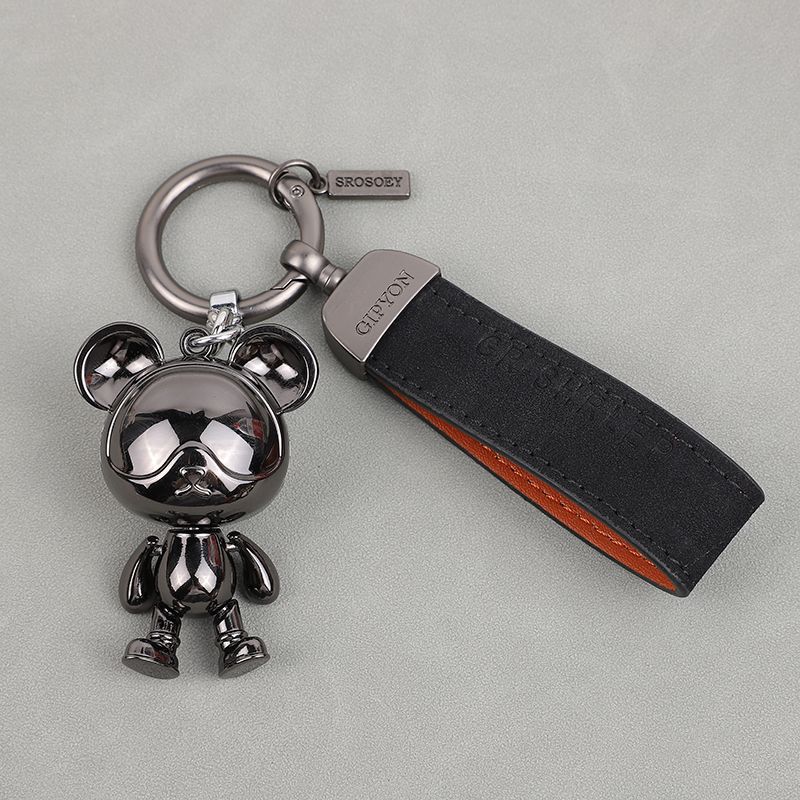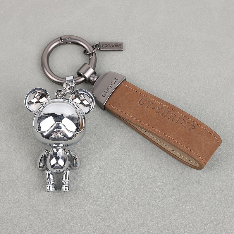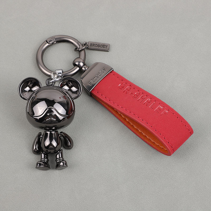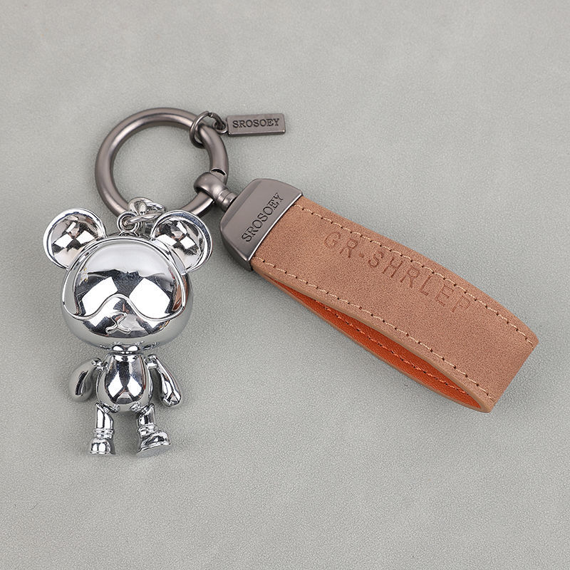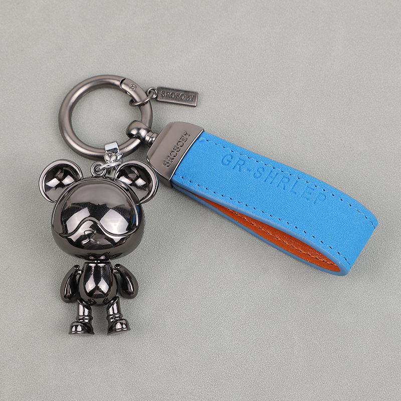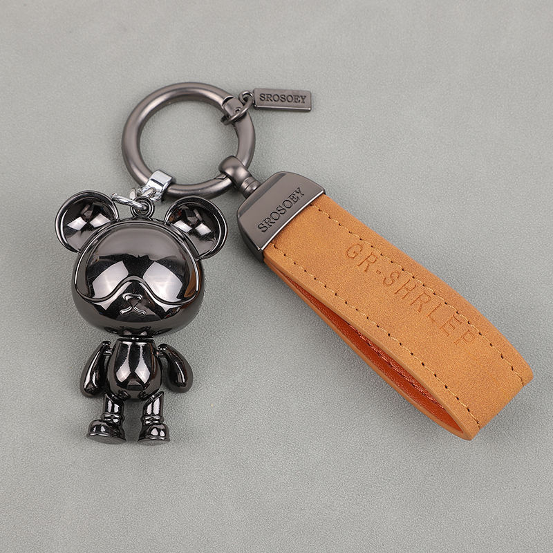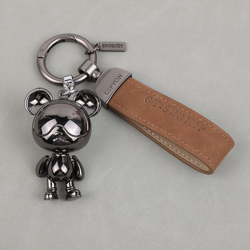 만화 귀여운 곰 금속 열쇠 고리 남자와 여자의 자동차 열쇠 고리 펜던트 고급 가죽 밧줄 학교 가방 매달려 유행