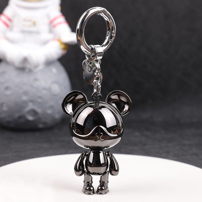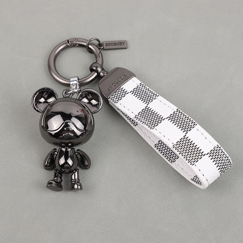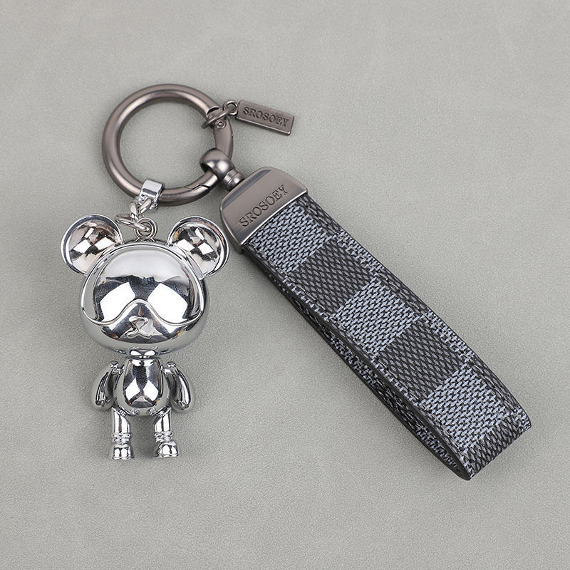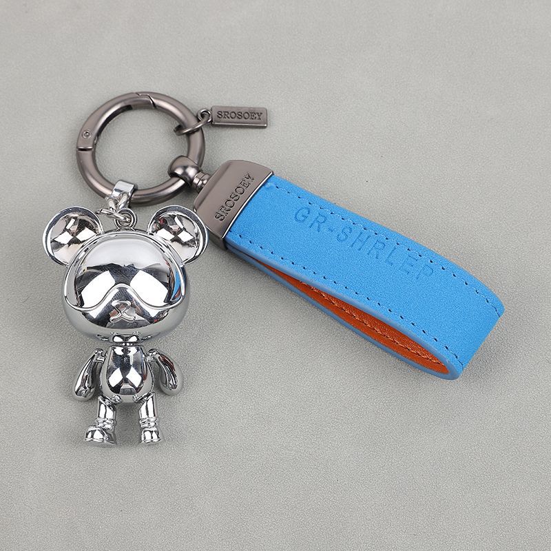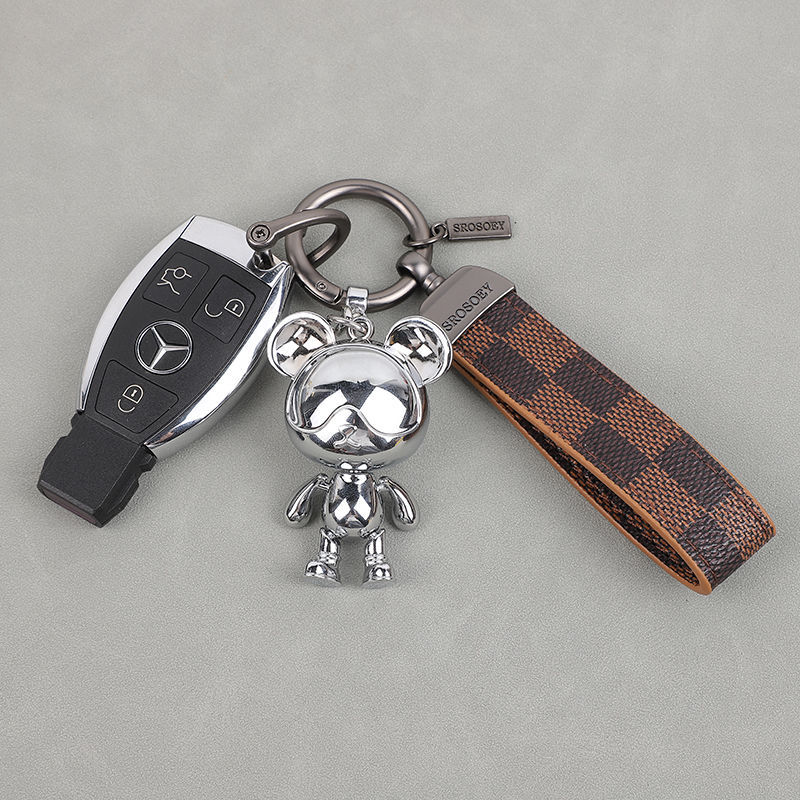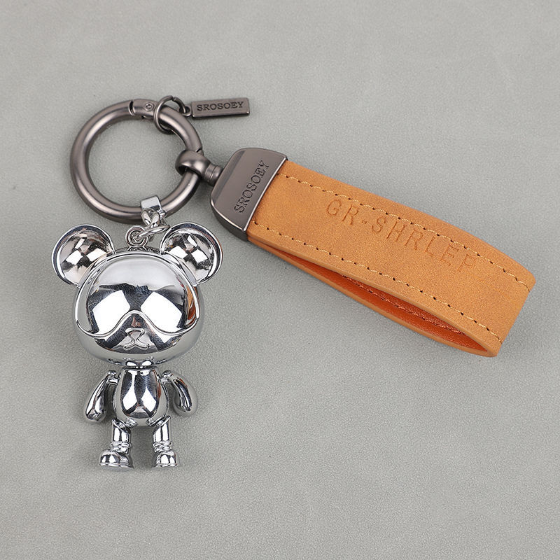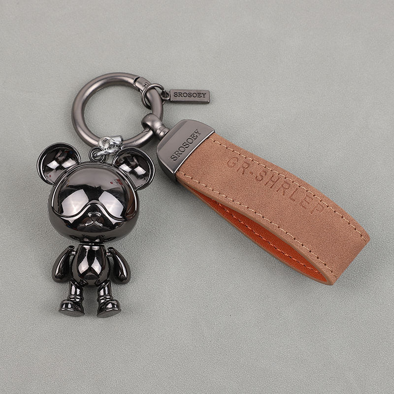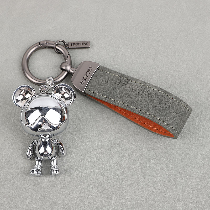 만화 귀여운 곰 금속 열쇠 고리 남자와 여자의 자동차 열쇠 고리 펜던트 고급 가죽 밧줄 학교 가방 매달려 유행