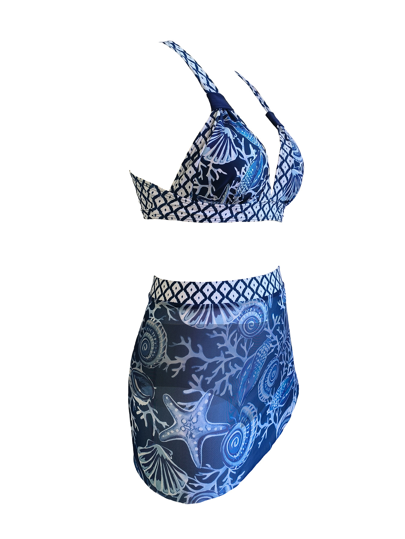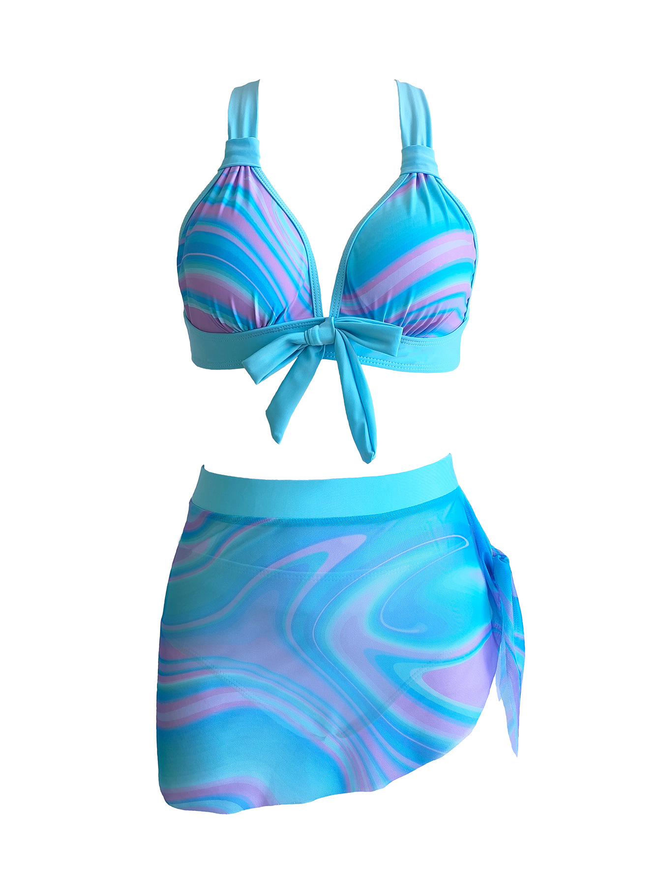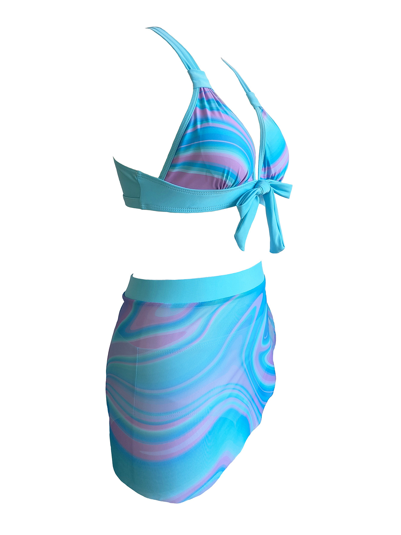2024 유럽과 미국의 새로운 국경 인쇄 비키니 아마존 섹시 게더 메쉬 3 피스 분할 수영복스토어 가기