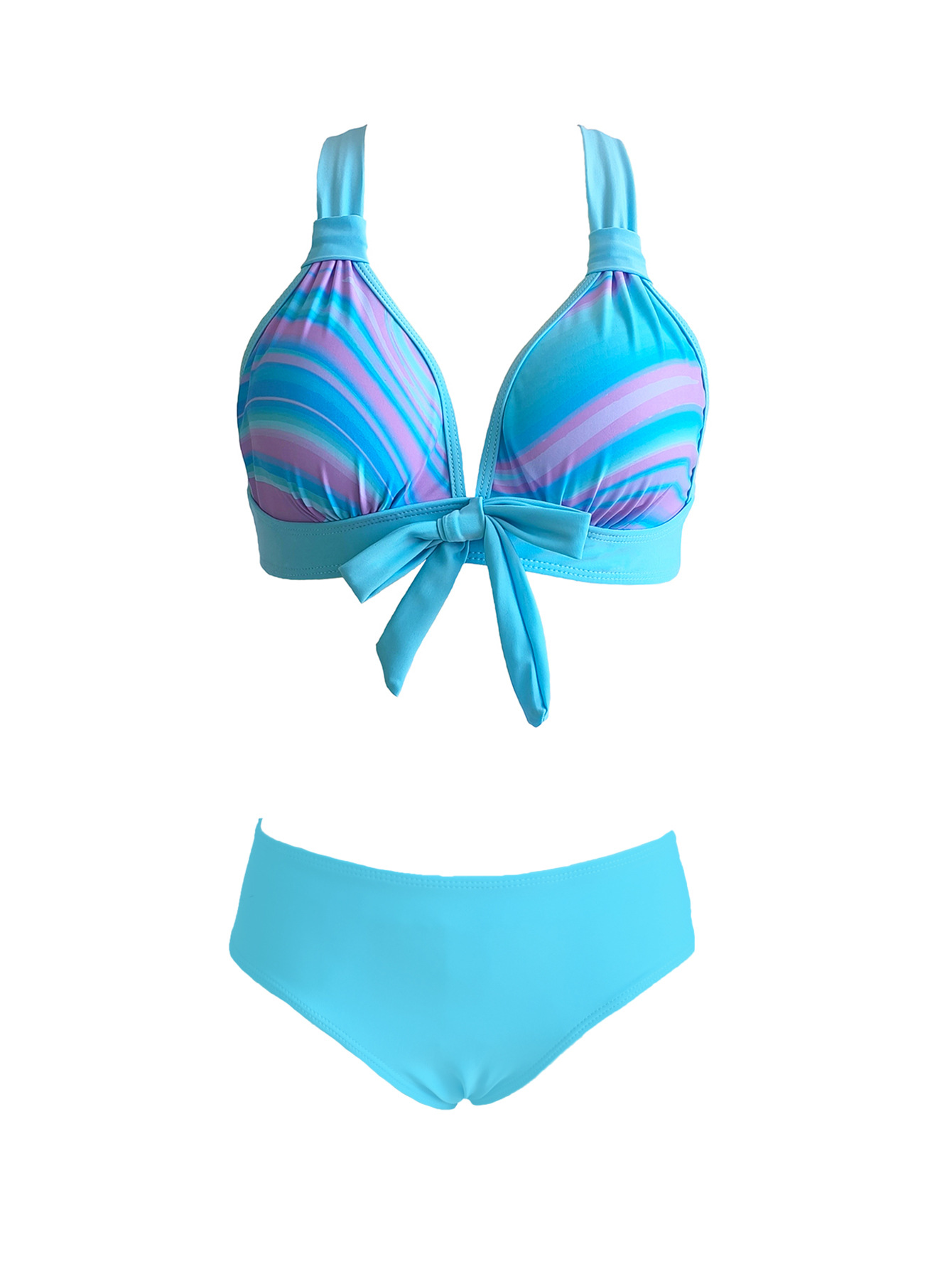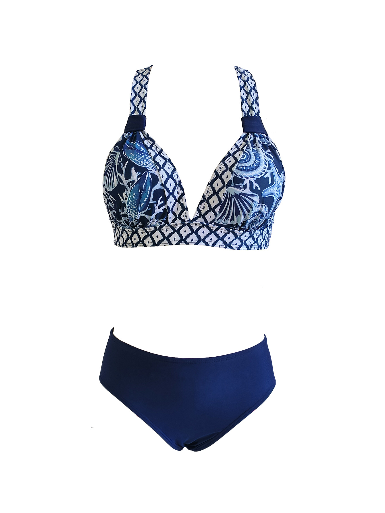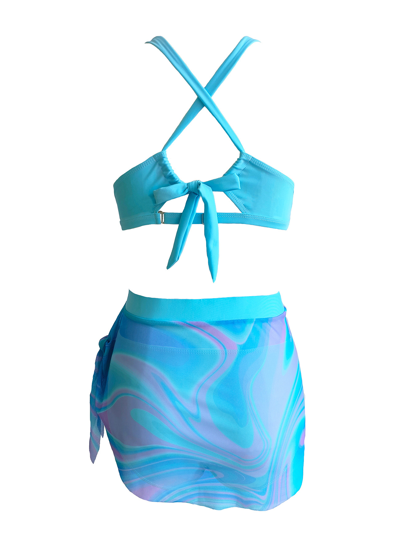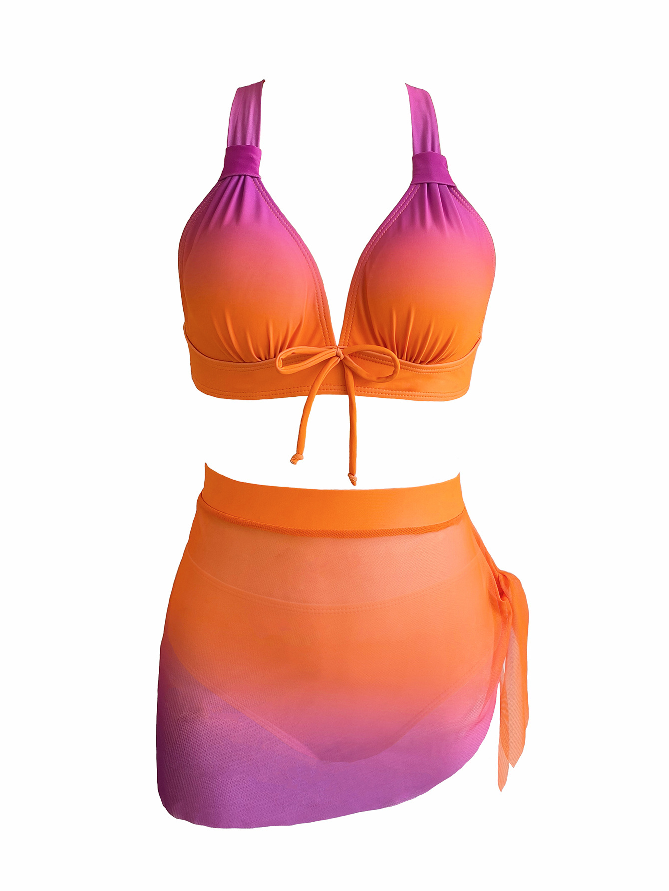 2024 유럽과 미국의 새로운 국경 인쇄 비키니 아마존 섹시 게더 메쉬 3 피스 분할 수영복스토어 가기