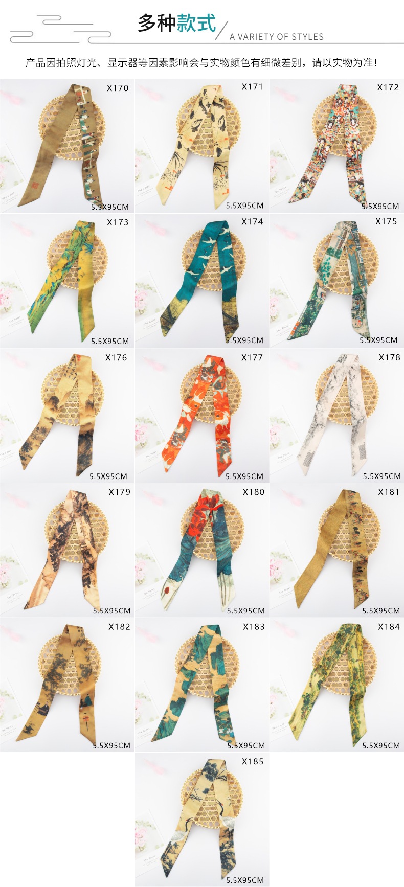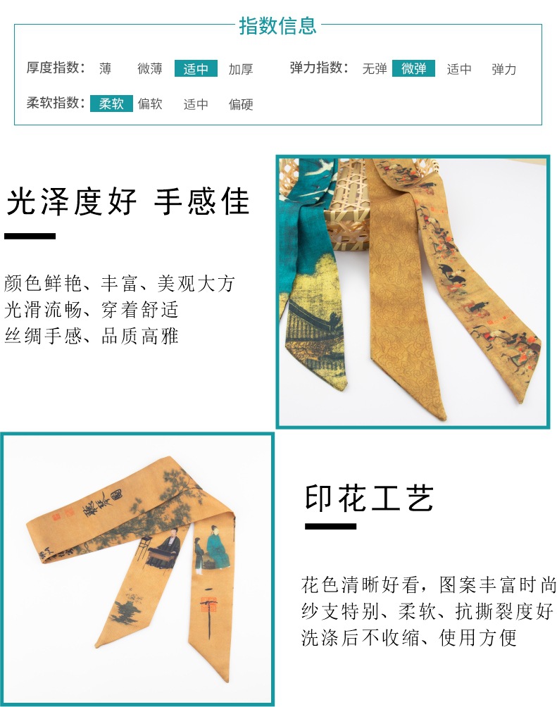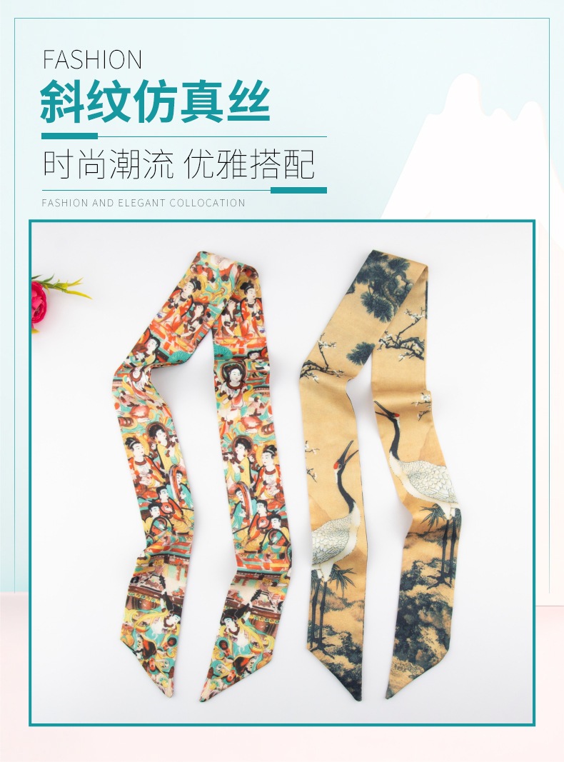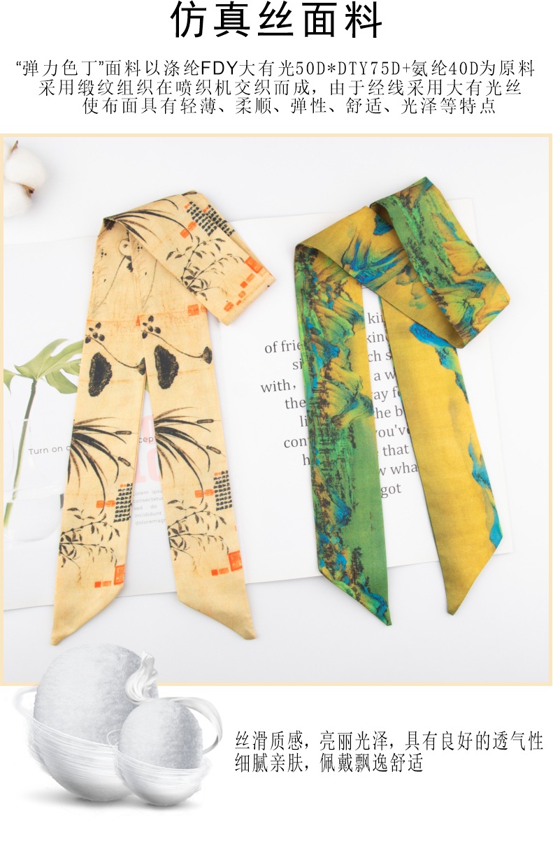 Guofeng 실크 스카프 도매 서도와 그림 골동품 Hanfu 복고풍 잉크 페인팅 리본 기질 넥타이 가방 긴 머리 밴드 장식