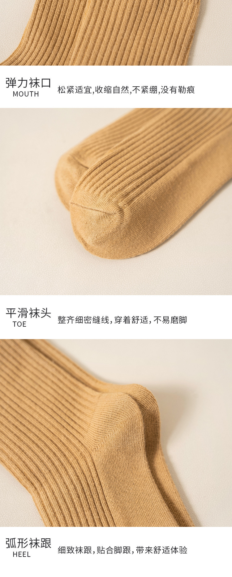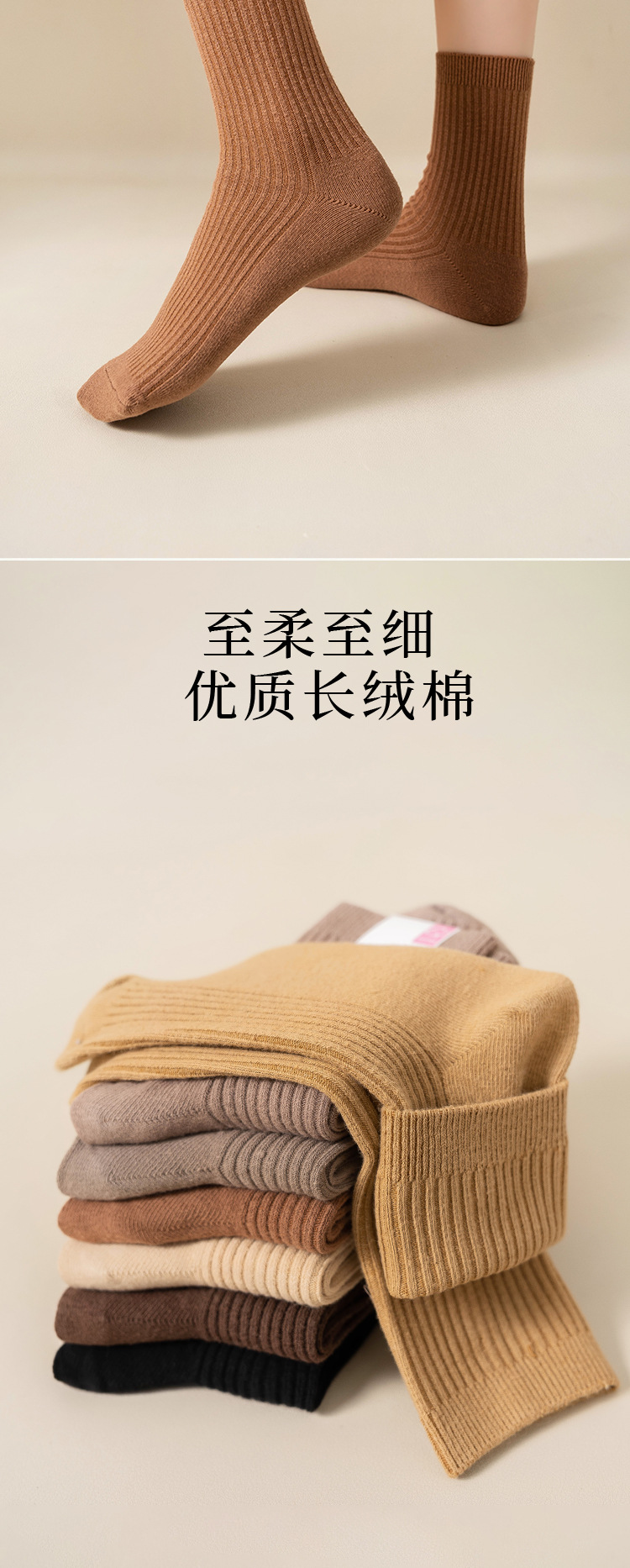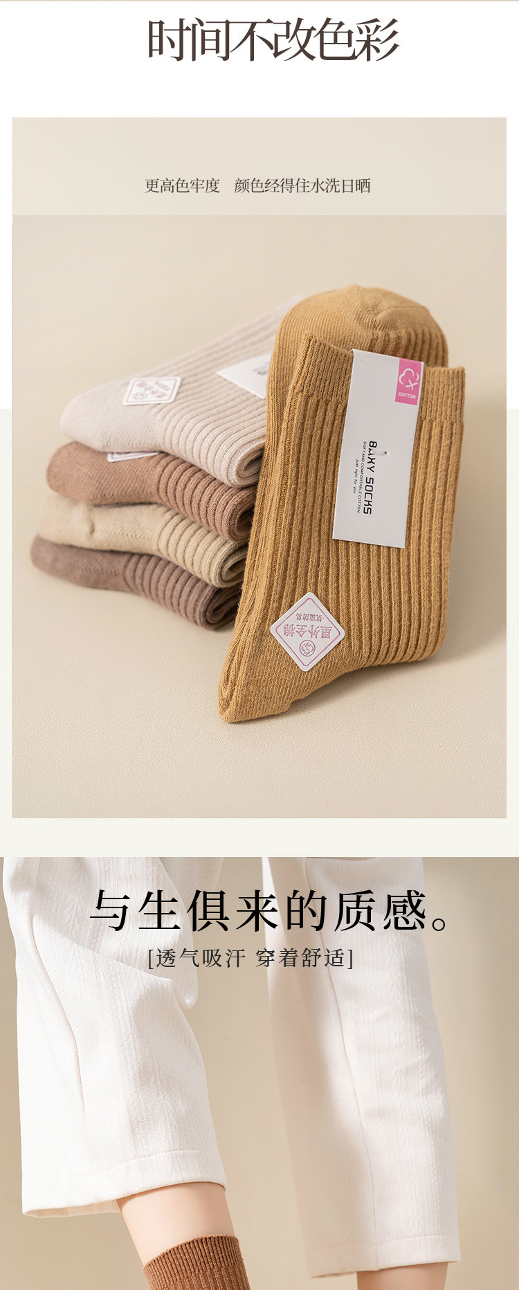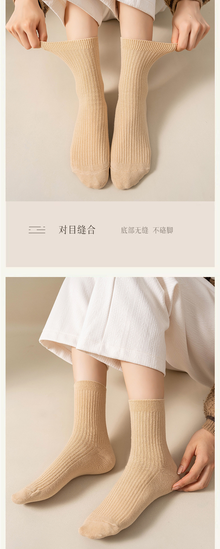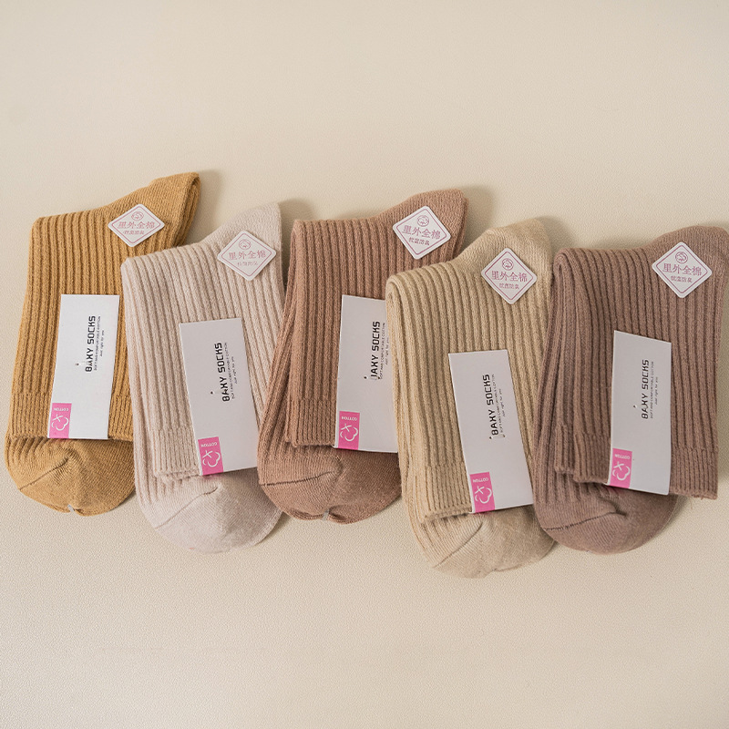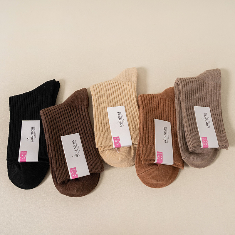 순수 코튼 양말 어린이 마일 라드 단색 냄새 방지 땀 흡수성 더블 니들 뼈없는 미드 튜브 양말 일본식 올면 베이지