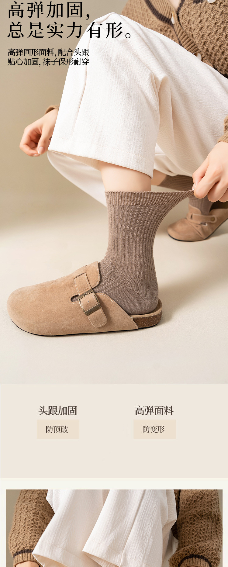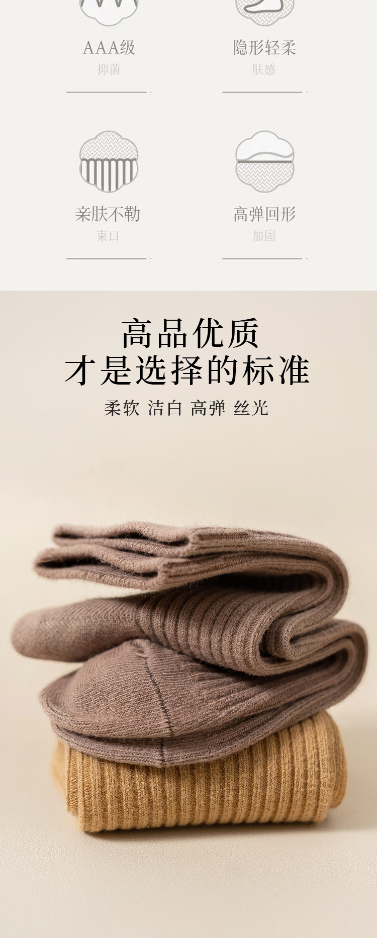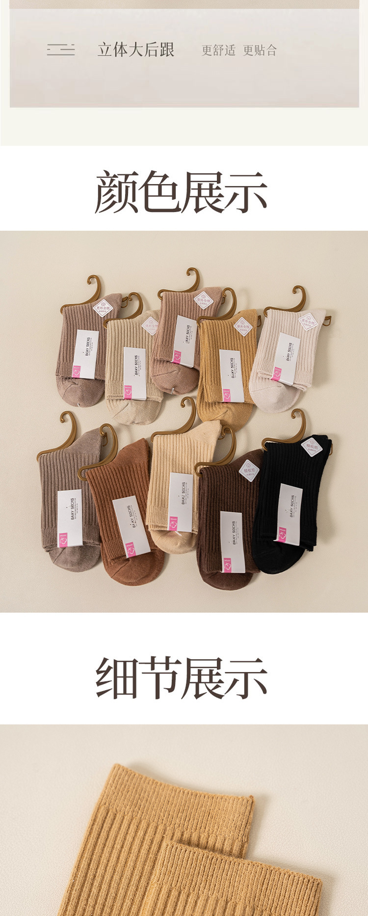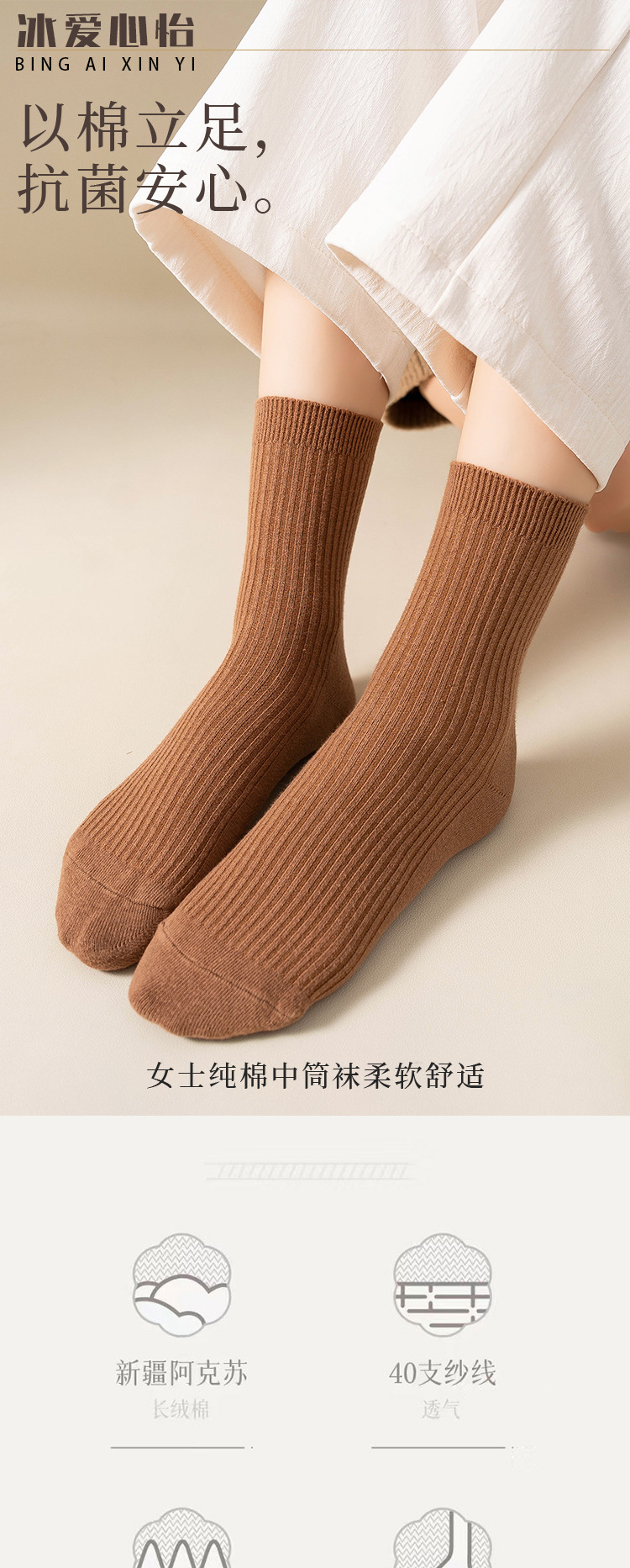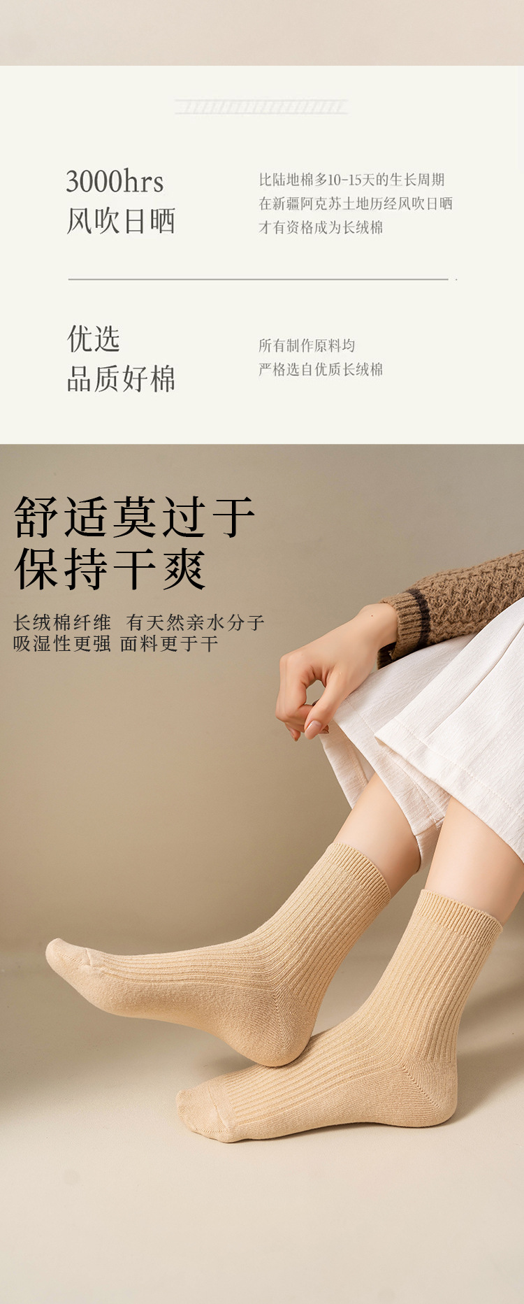 순수 코튼 양말 어린이 마일 라드 단색 냄새 방지 땀 흡수성 더블 니들 뼈없는 미드 튜브 양말 일본식 올면 베이지