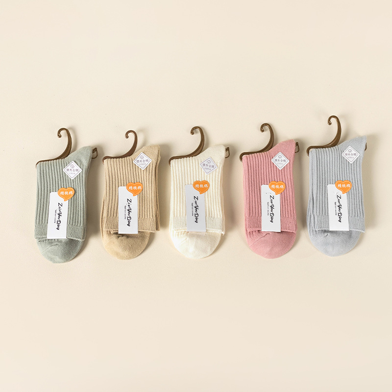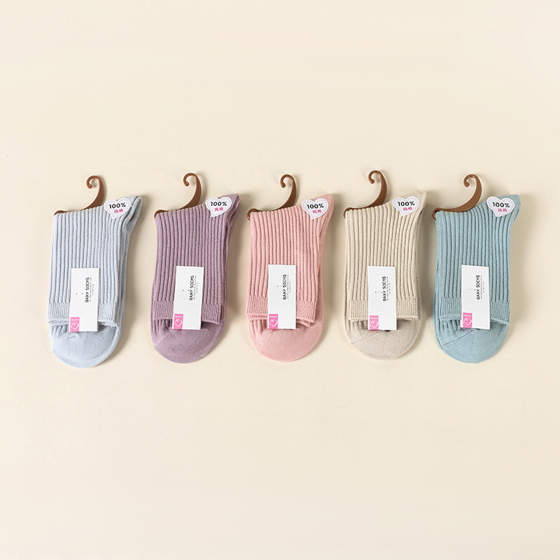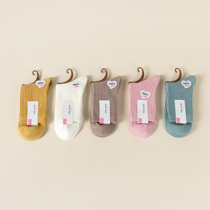순수 코튼 양말 어린이 마일 라드 단색 냄새 방지 땀 흡수성 더블 니들 뼈없는 미드 튜브 양말 일본식 올면 베이지스토어 가기