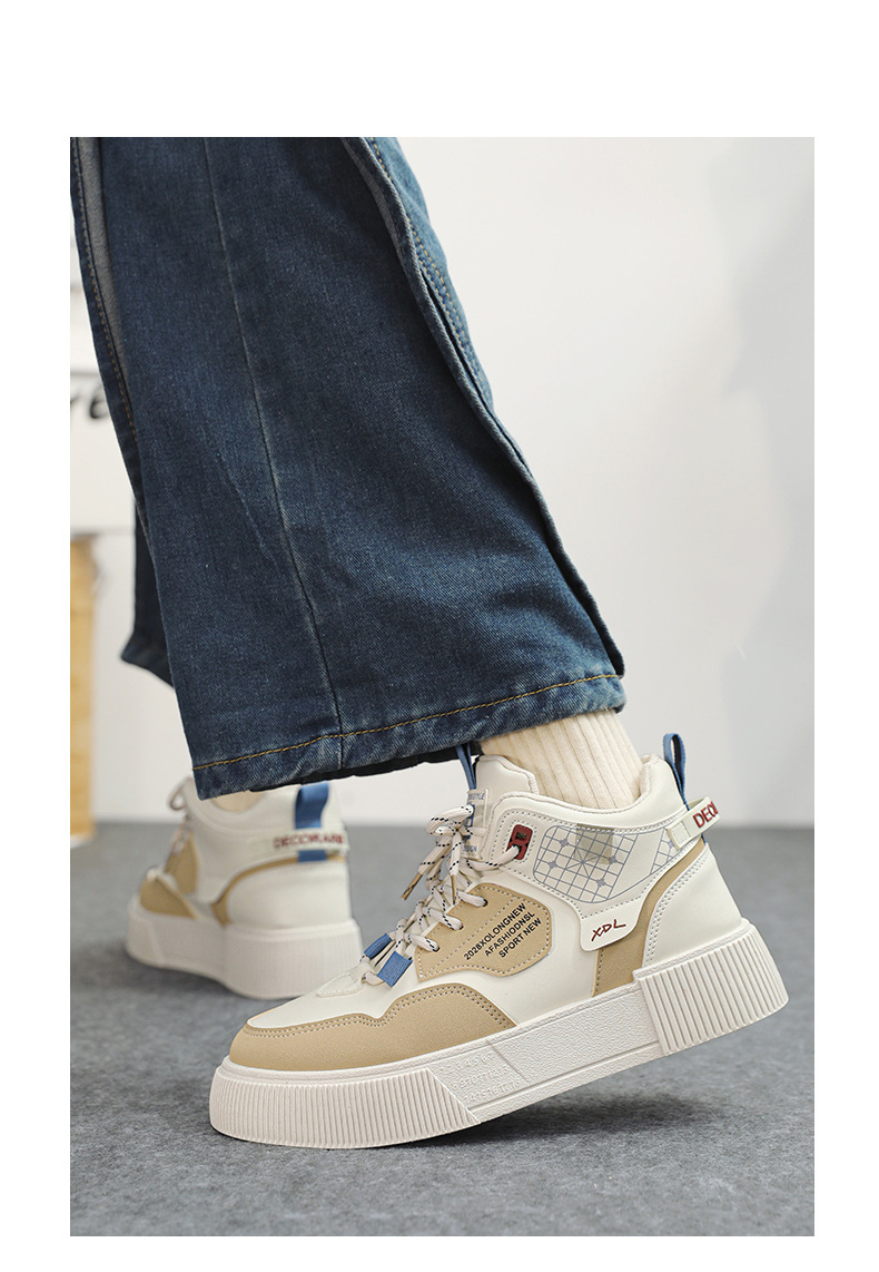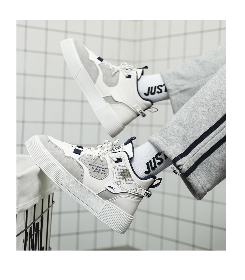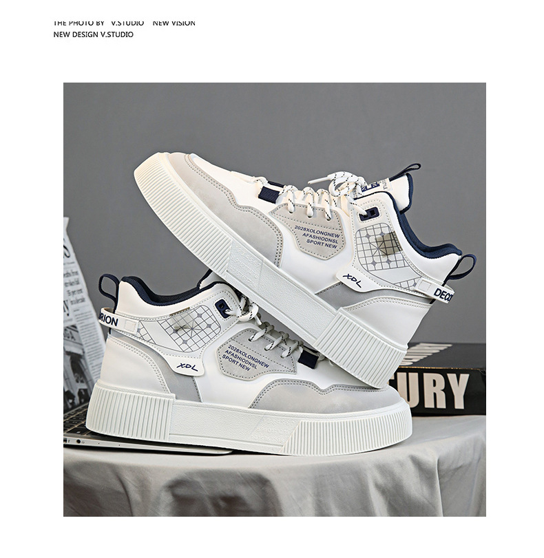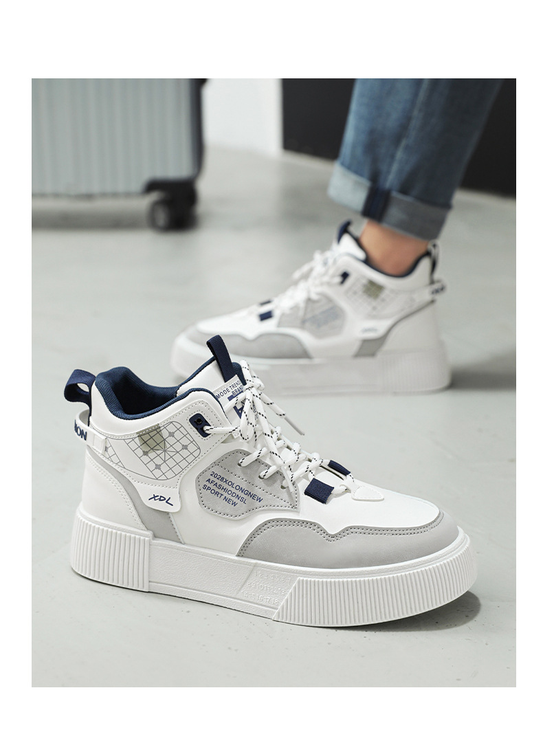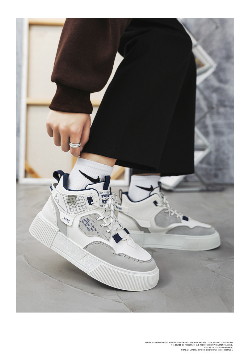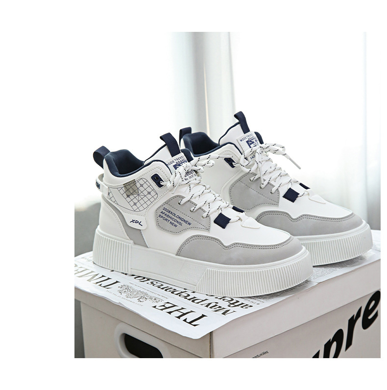 하이탑 신발 남자 2023 새로운 겨울 가죽 방수 높이 증가 신발 청소년 캐주얼 스포츠 흰색 신발스토어 가기
