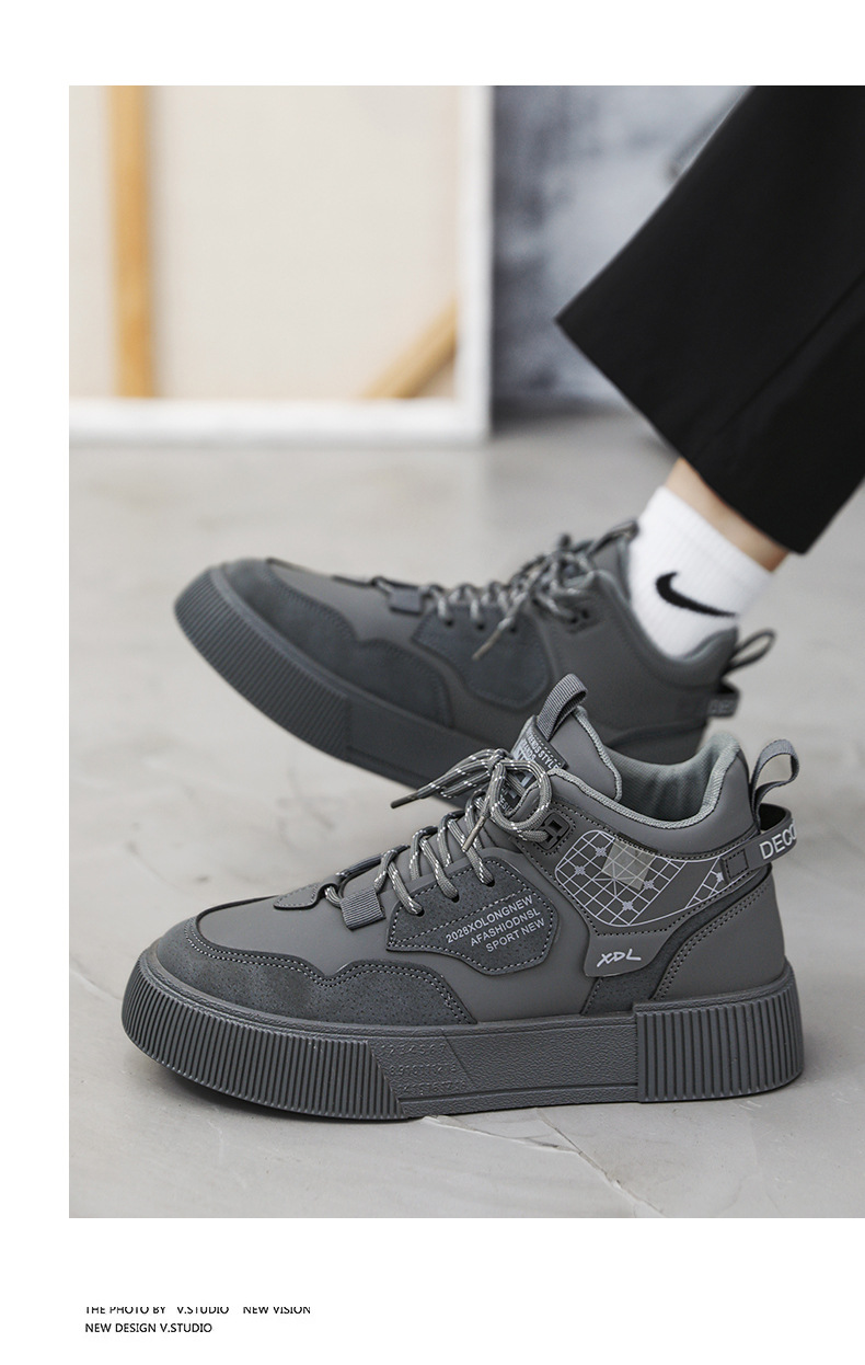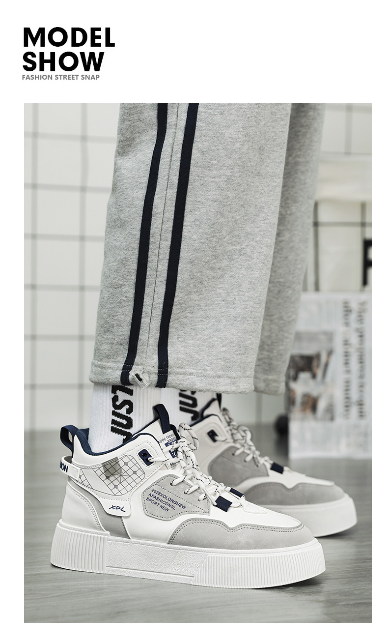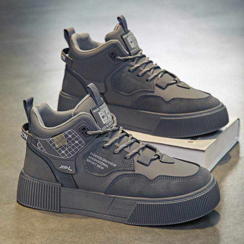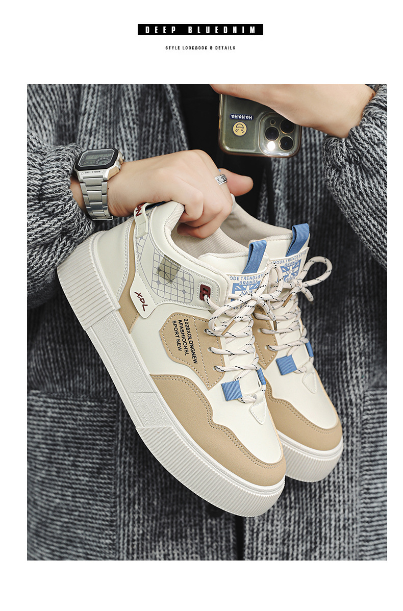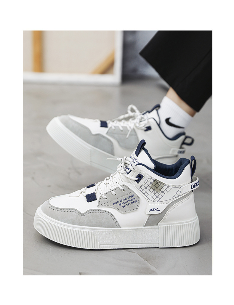 하이탑 신발 남자 2023 새로운 겨울 가죽 방수 높이 증가 신발 청소년 캐주얼 스포츠 흰색 신발스토어 가기