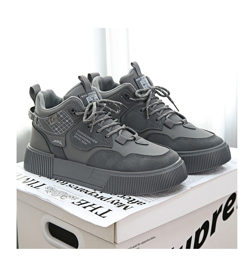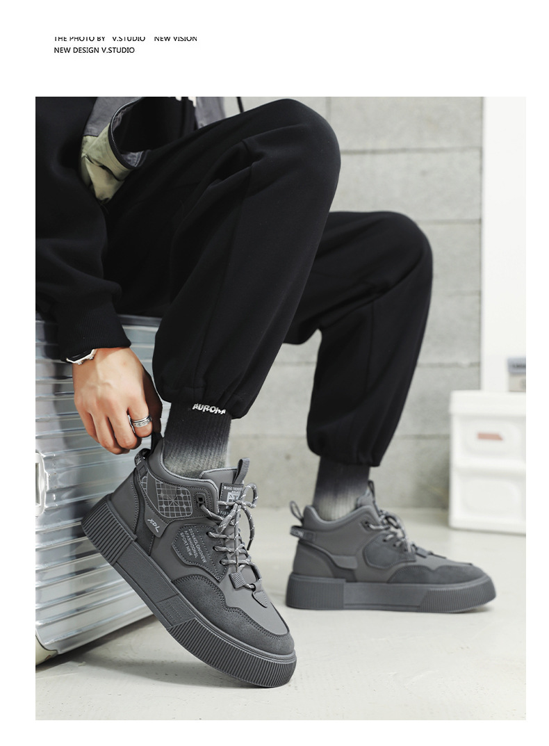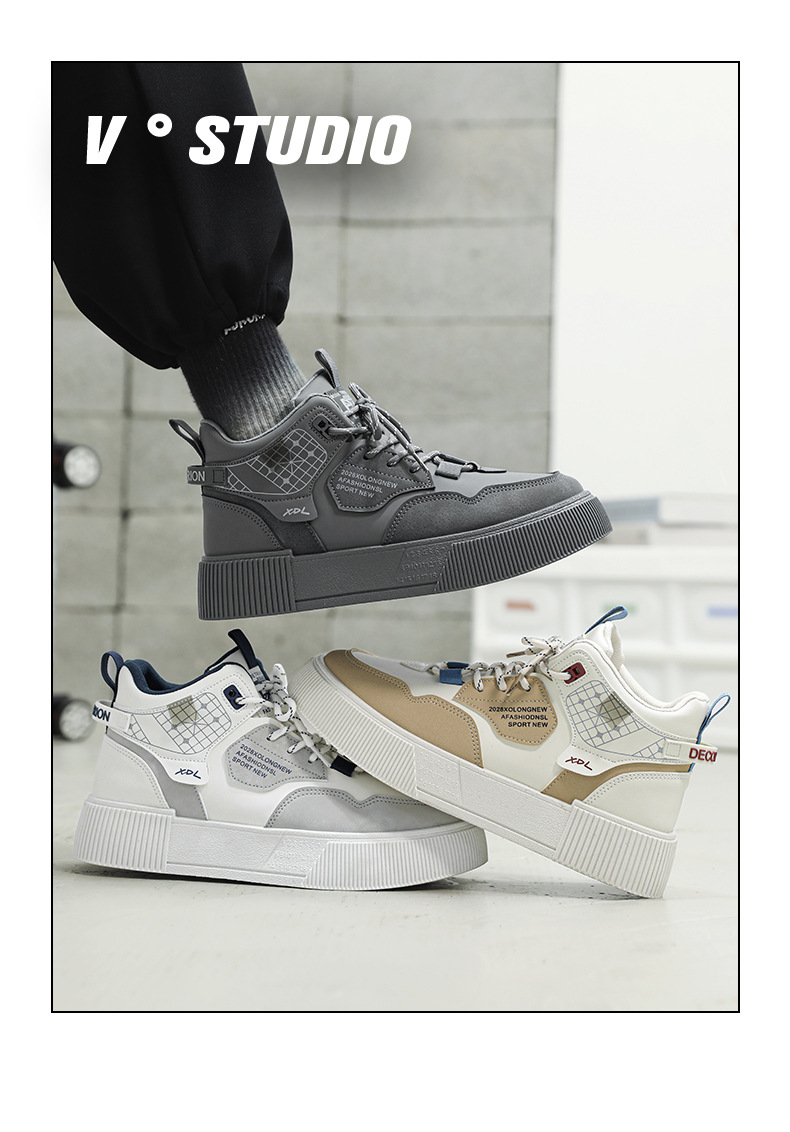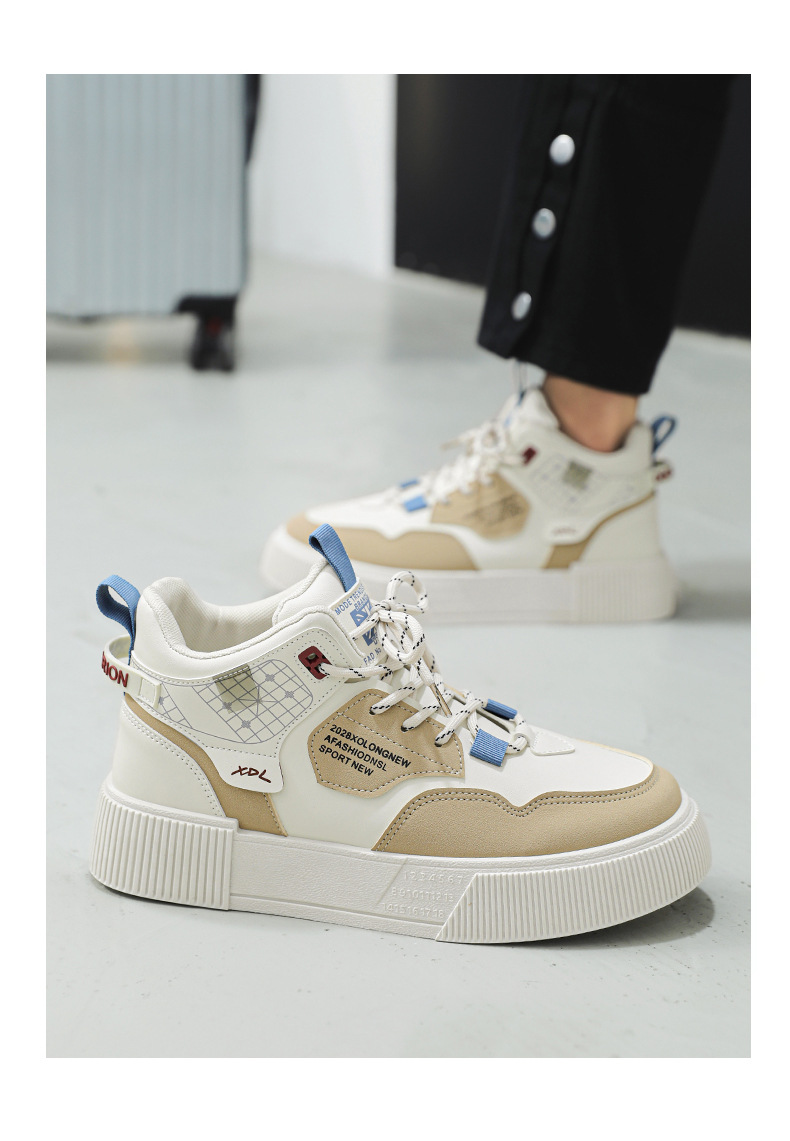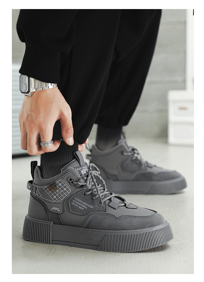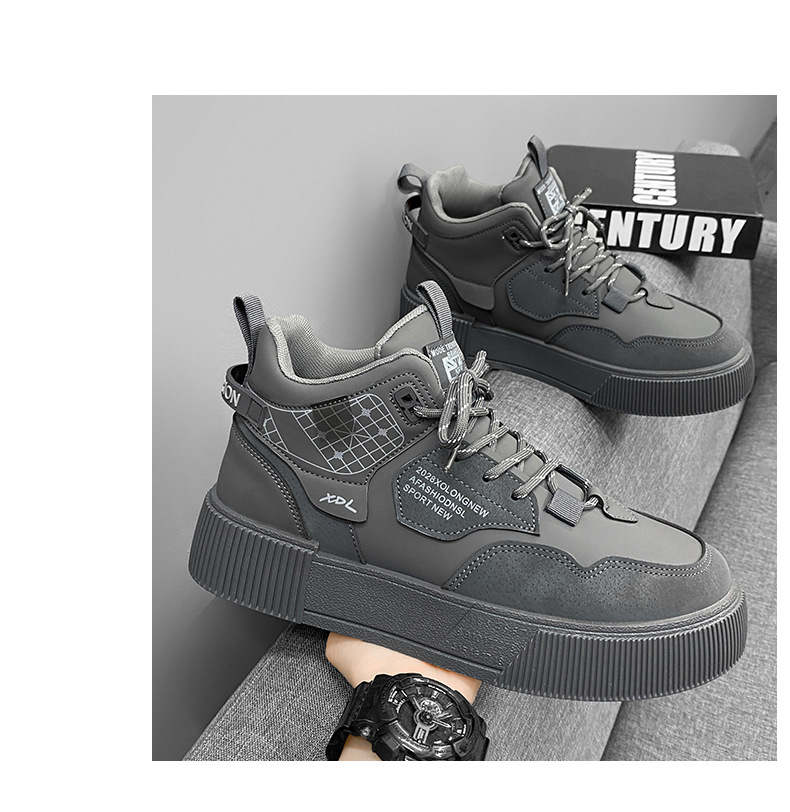 하이탑 신발 남자 2023 새로운 겨울 가죽 방수 높이 증가 신발 청소년 캐주얼 스포츠 흰색 신발스토어 가기