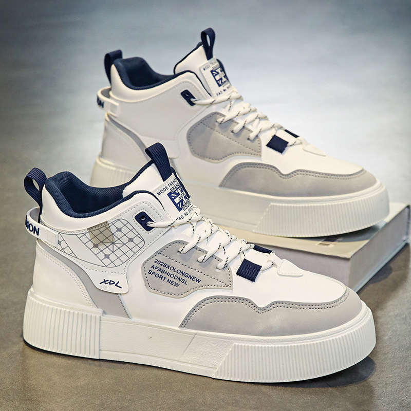하이탑 신발 남자 2023 새로운 겨울 가죽 방수 높이 증가 신발 청소년 캐주얼 스포츠 흰색 신발