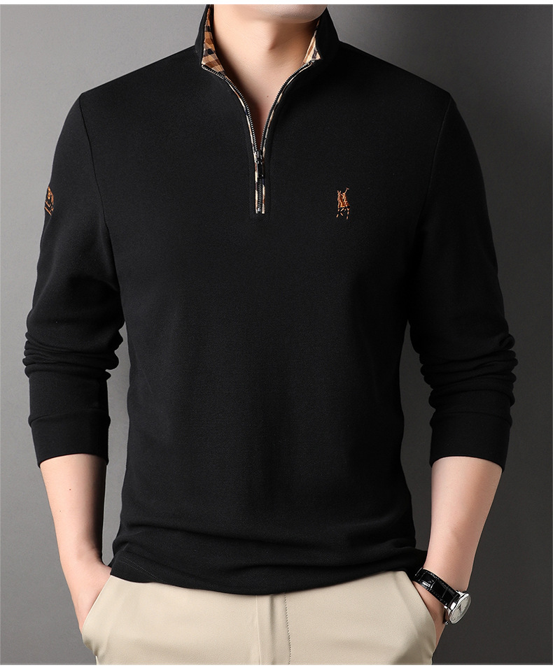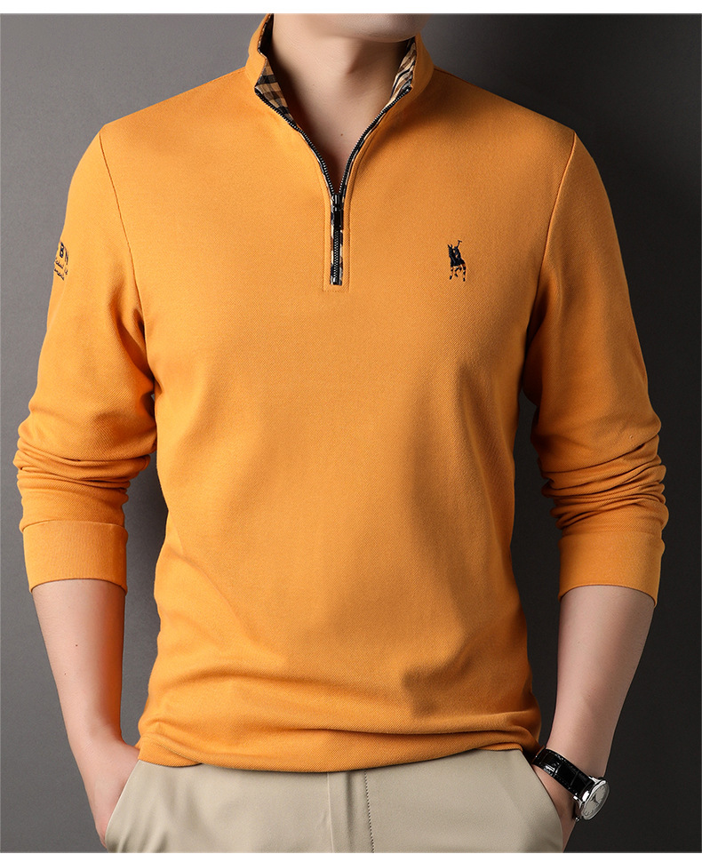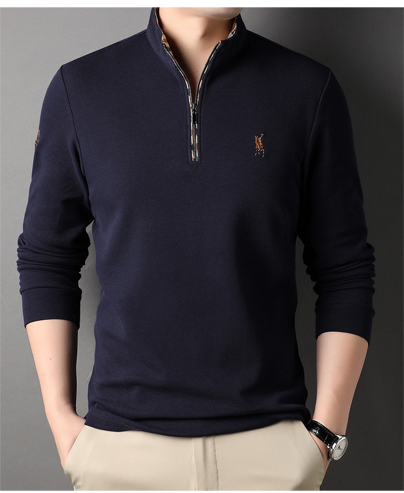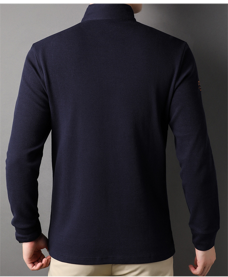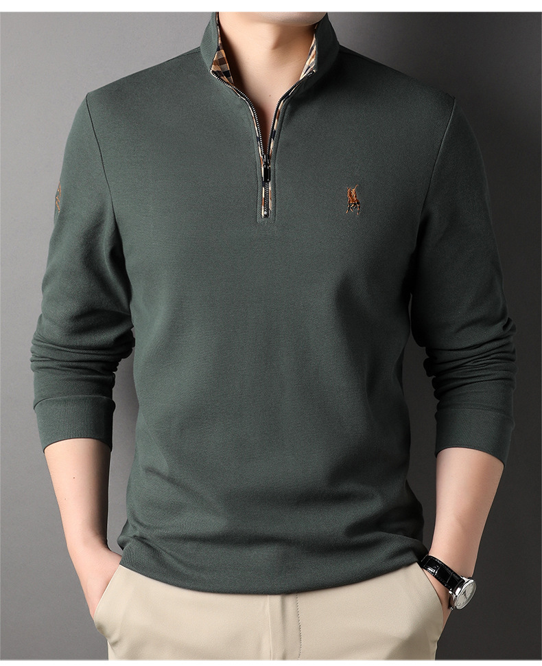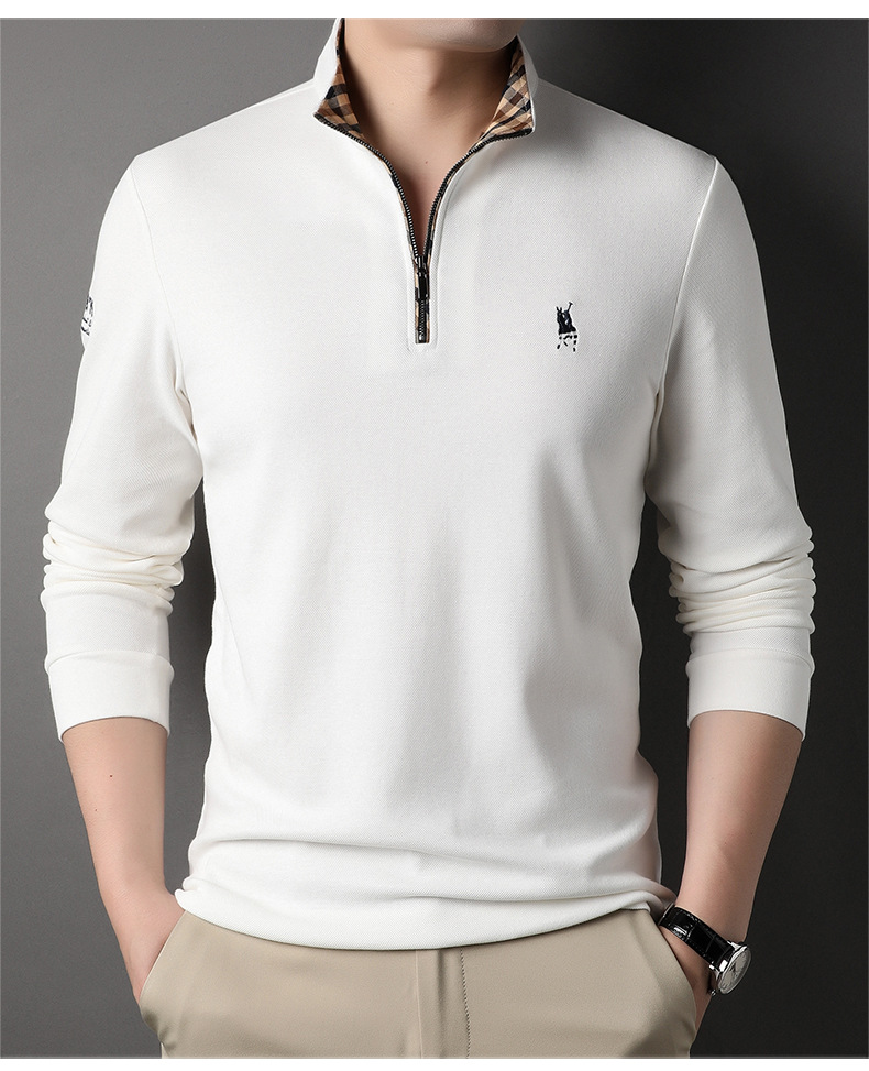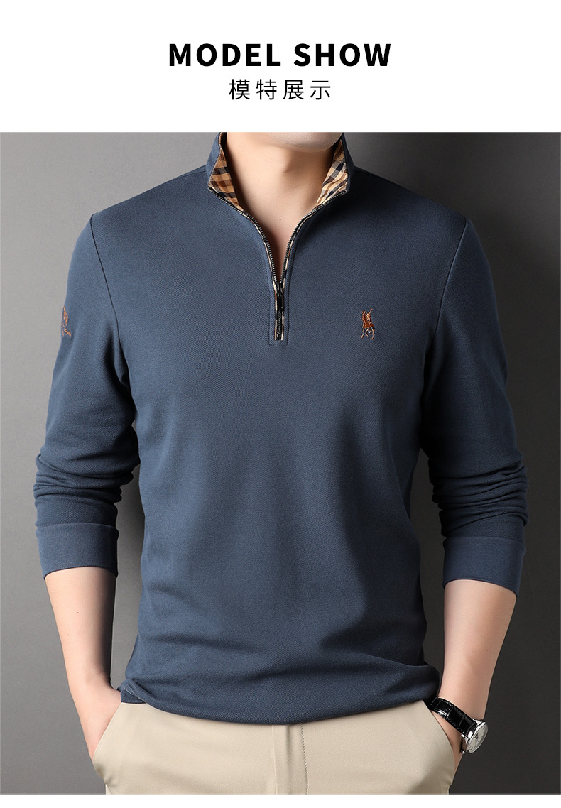 만즈보 30 가을 남성 긴팔 티셔츠의 엄격한 선택 봄과 가을 패션 캐주얼 남성 지퍼 수직 칼라가있는 탑 자수