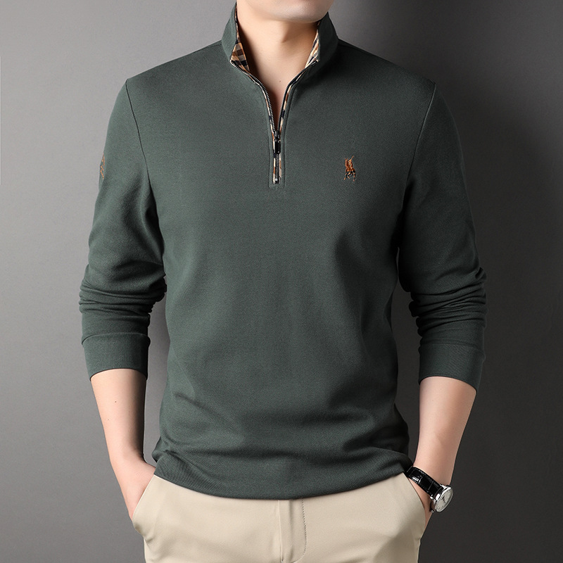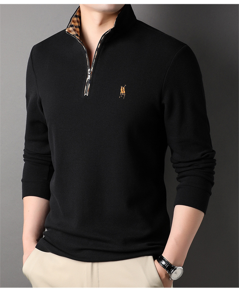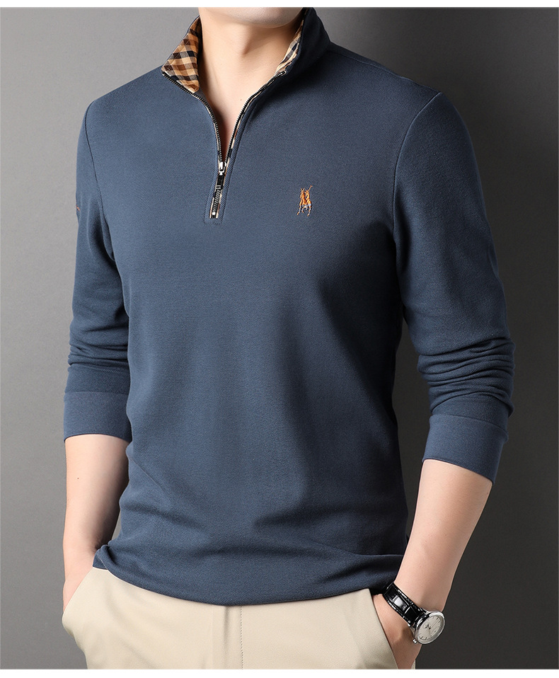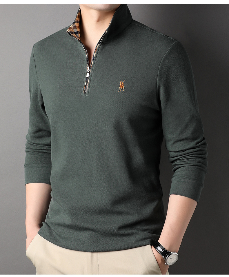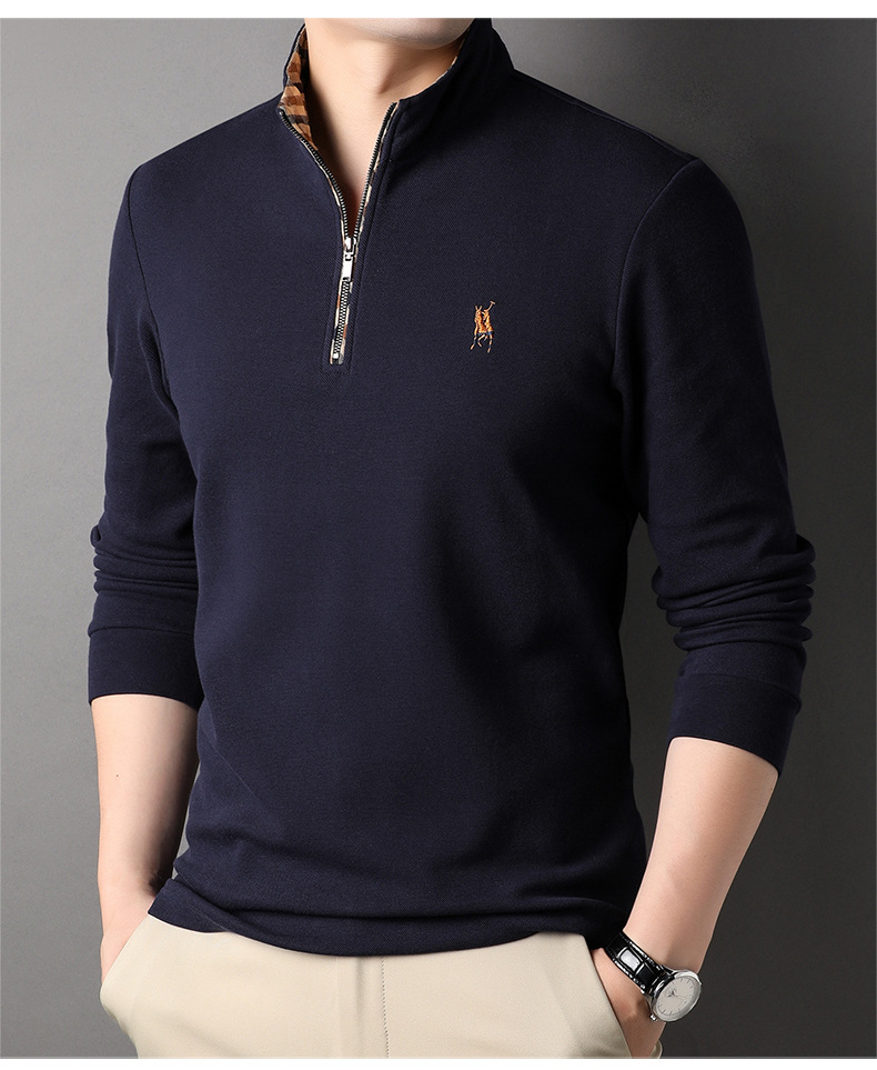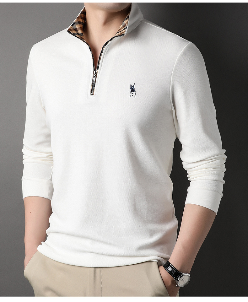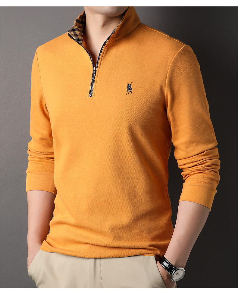 만즈보 30 가을 남성 긴팔 티셔츠의 엄격한 선택 봄과 가을 패션 캐주얼 남성 지퍼 수직 칼라가있는 탑 자수
