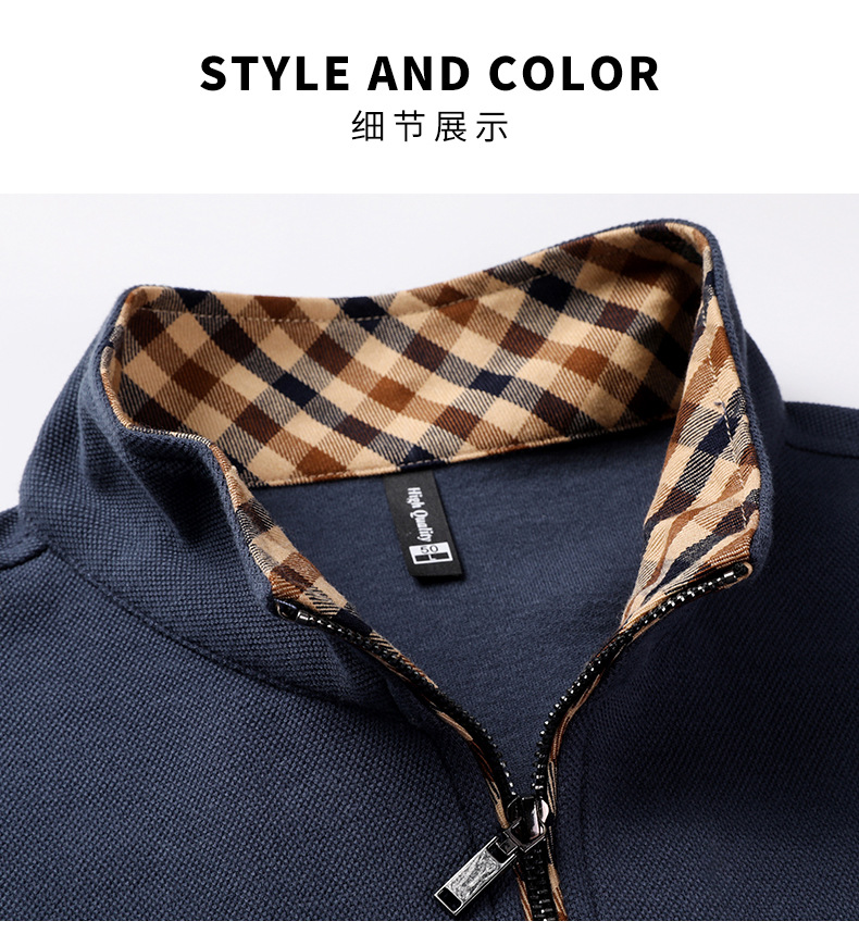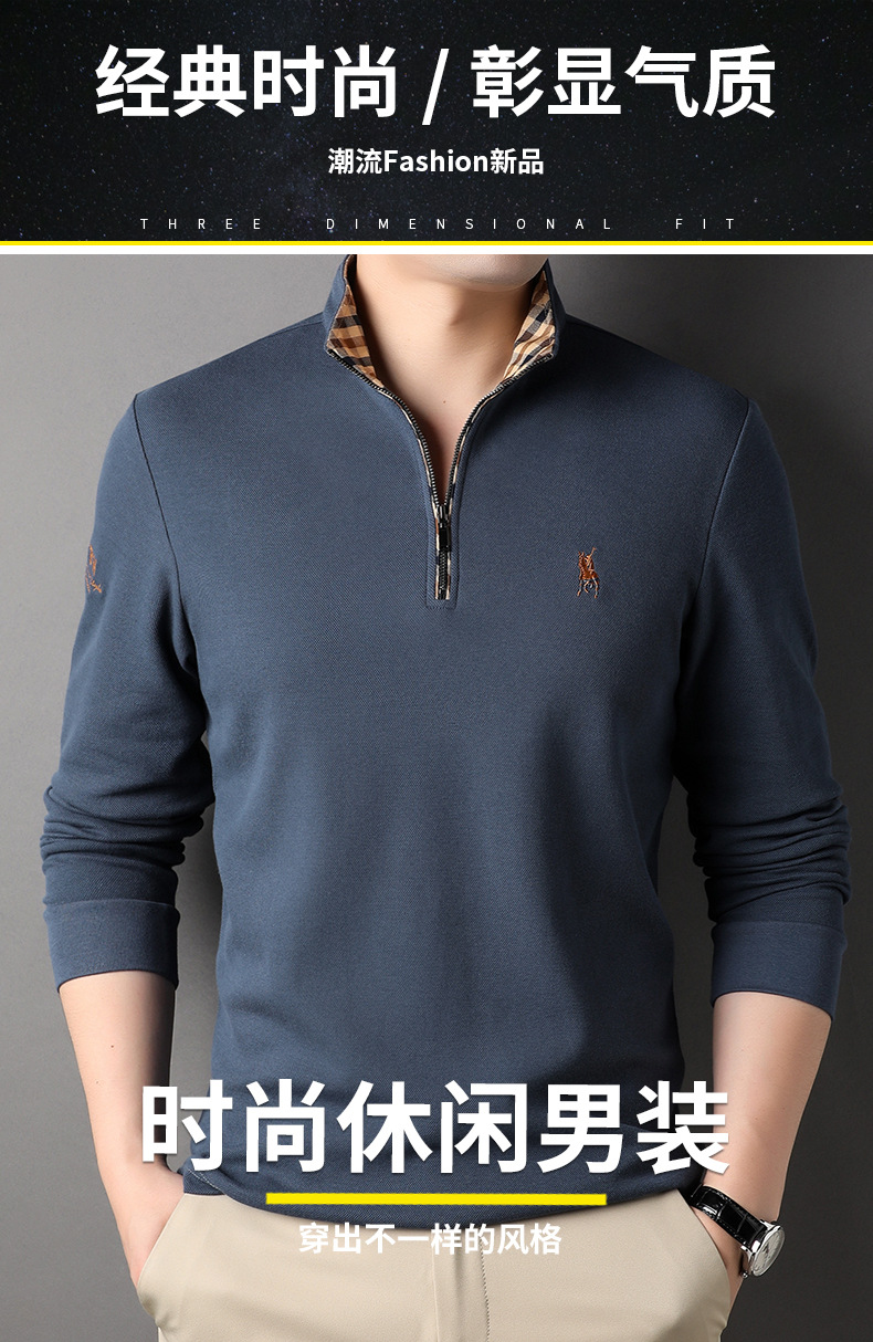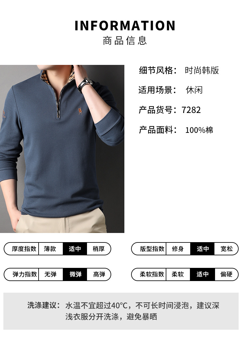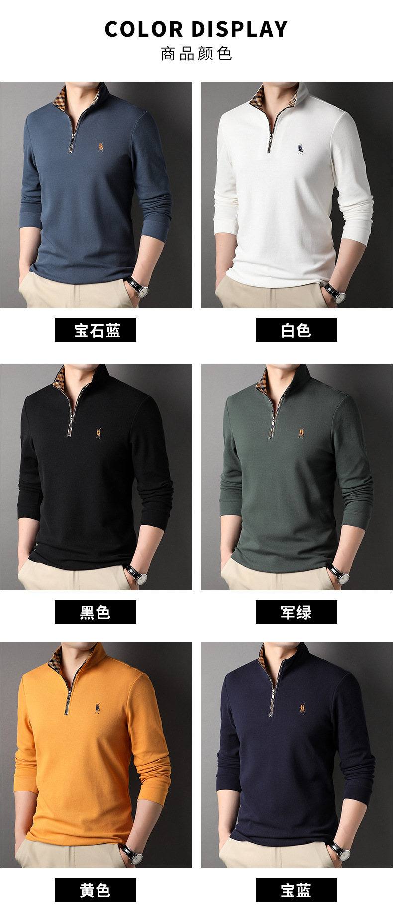 만즈보 30 가을 남성 긴팔 티셔츠의 엄격한 선택 봄과 가을 패션 캐주얼 남성 지퍼 수직 칼라가있는 탑 자수스토어 가기
