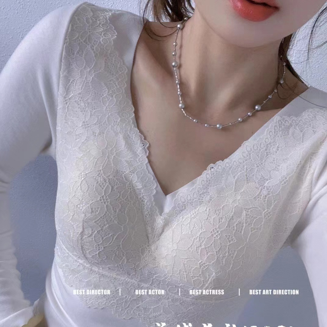 Hui Zhixin 19085 패션 섹시한 V-넥 단색 편안한 캐시미어 고정 컵 슬림핏 바디 긴 소매 따뜻한 탑