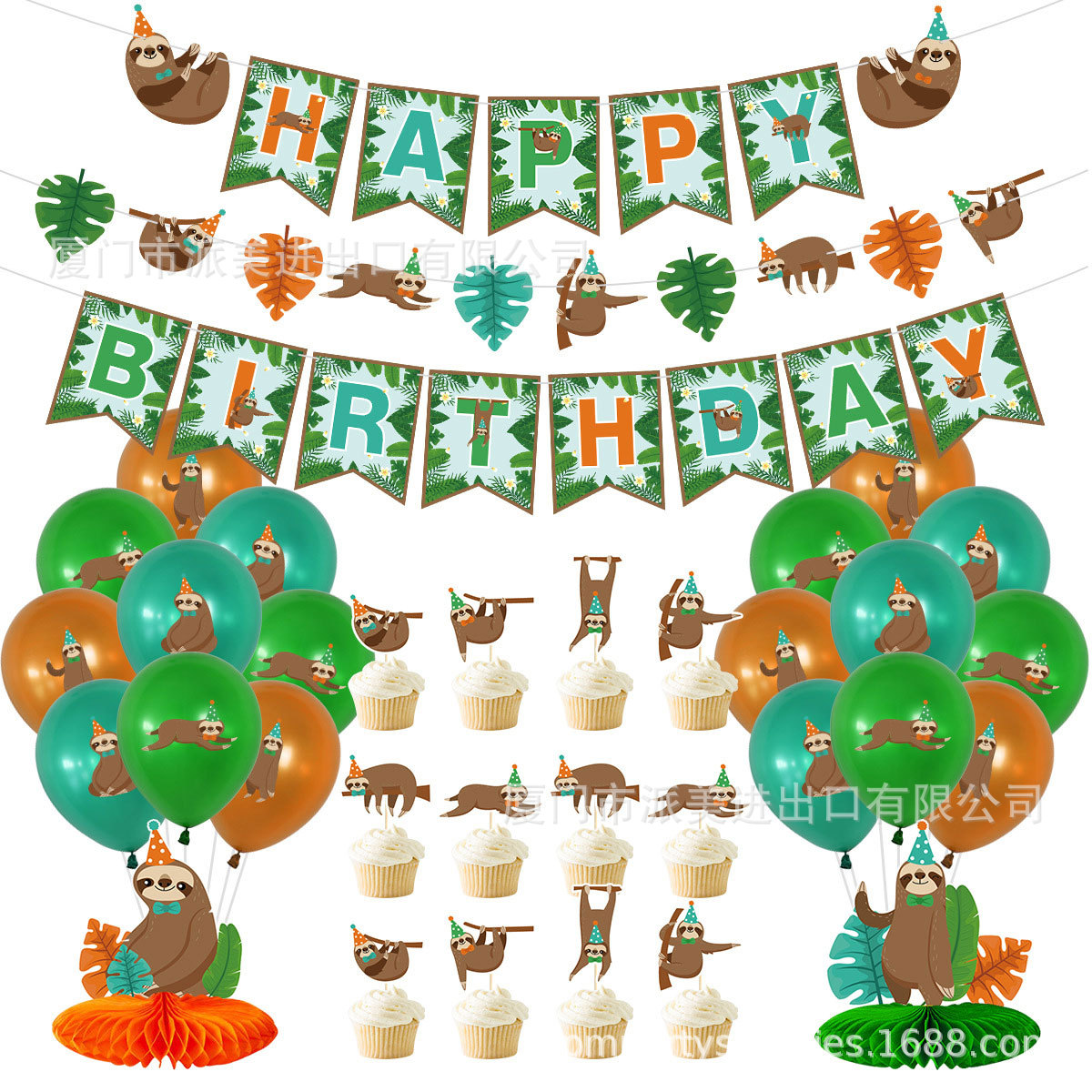 만화 동물 나무 늘보 테마 파티 장식 어린이 생일 축하 깃발 케이크 깃발 풍선 조합 세트스토어 가기