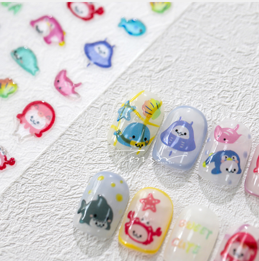 TENSOR 새로운 공예 만화 해파리 네일 스티커 접착 네일 스티커 스테레오 젤리 시리즈 M-189스토어 가기