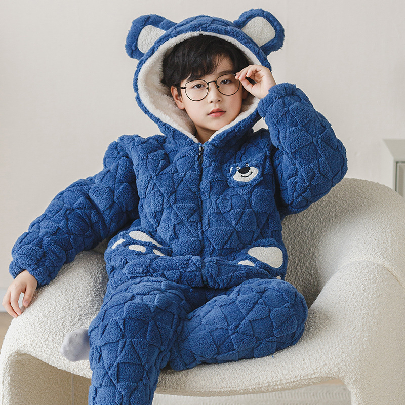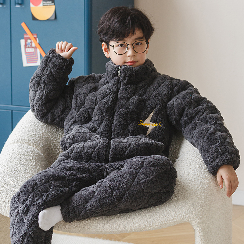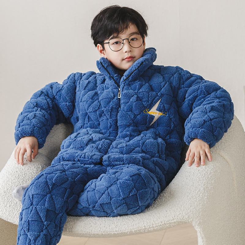 2023 새로운 어린이 잠옷 소년의 겨울 퀼트 산호 양털 두꺼운 소년의 겨울 중간 및 대형 어린이 가정복