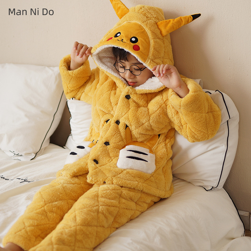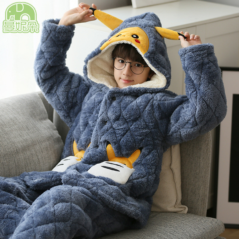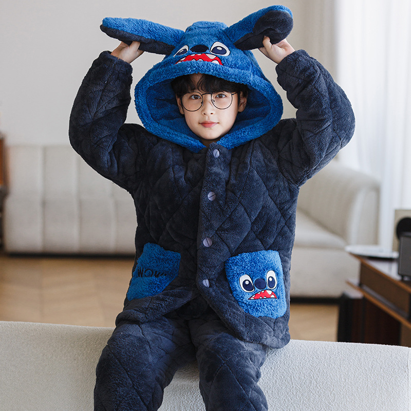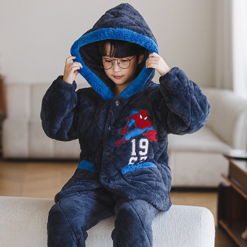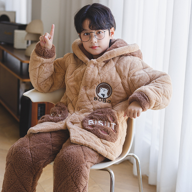 2023 새로운 어린이 잠옷 소년의 겨울 퀼트 산호 양털 두꺼운 소년의 겨울 중간 및 대형 어린이 가정복스토어 가기