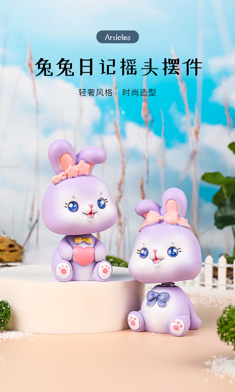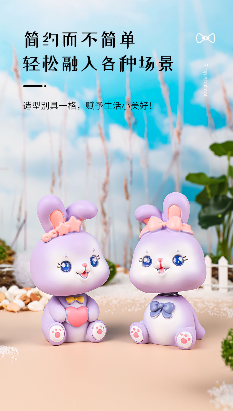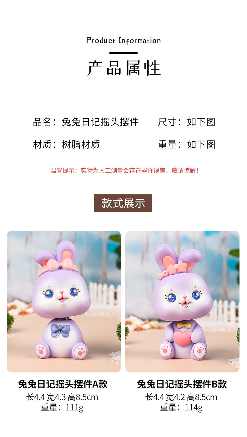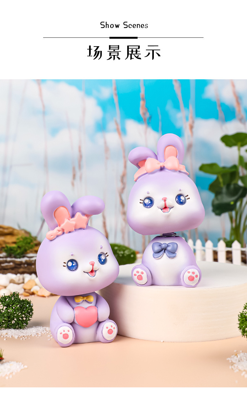 토끼 일기 쉐이크 헤드 장식품 귀여운 작은 토끼 홈 수지 장식 자동차 장식품 커플 선물 도매