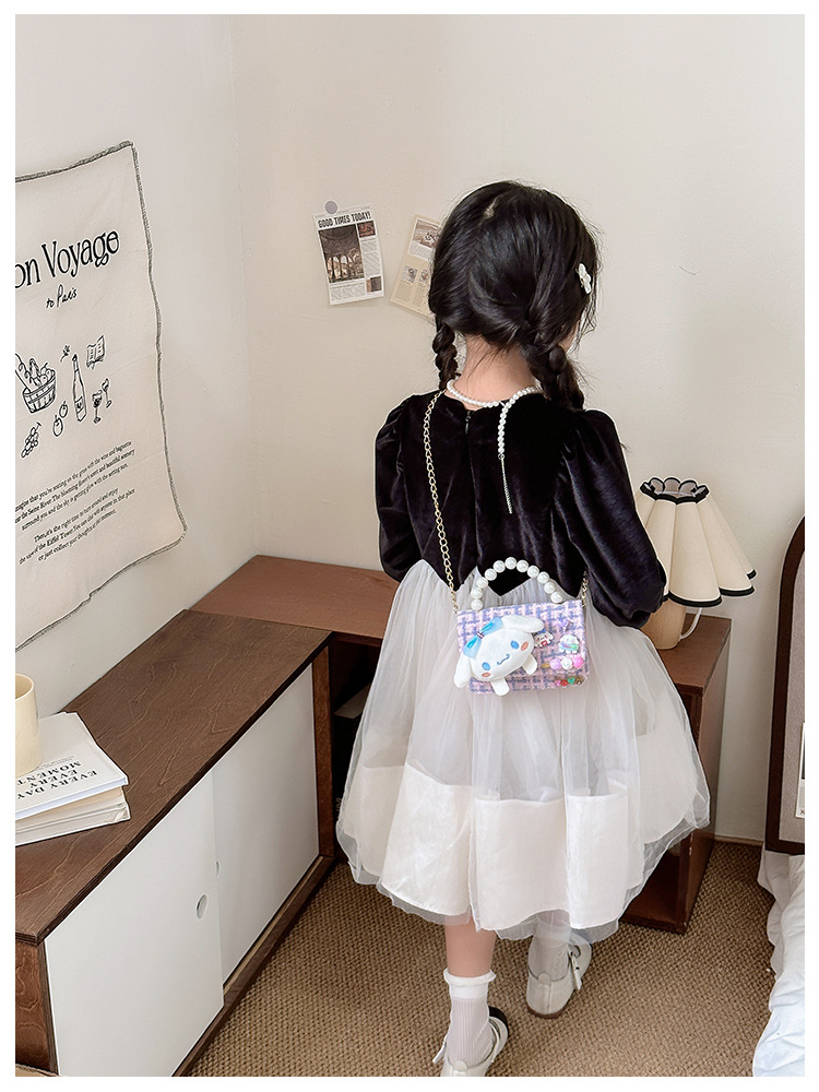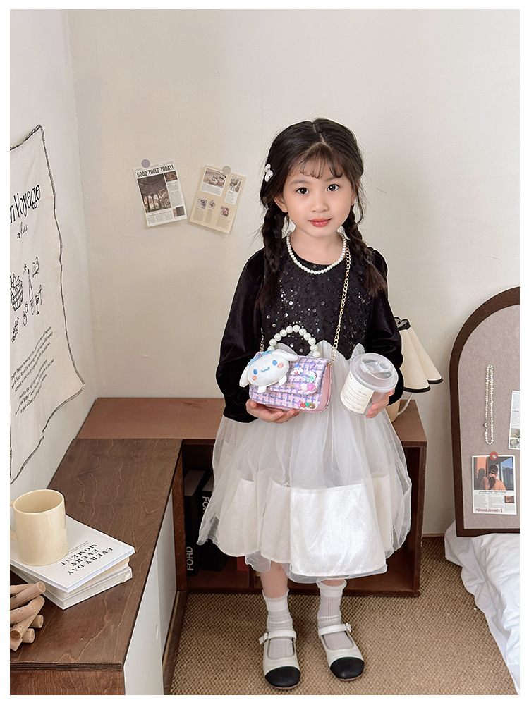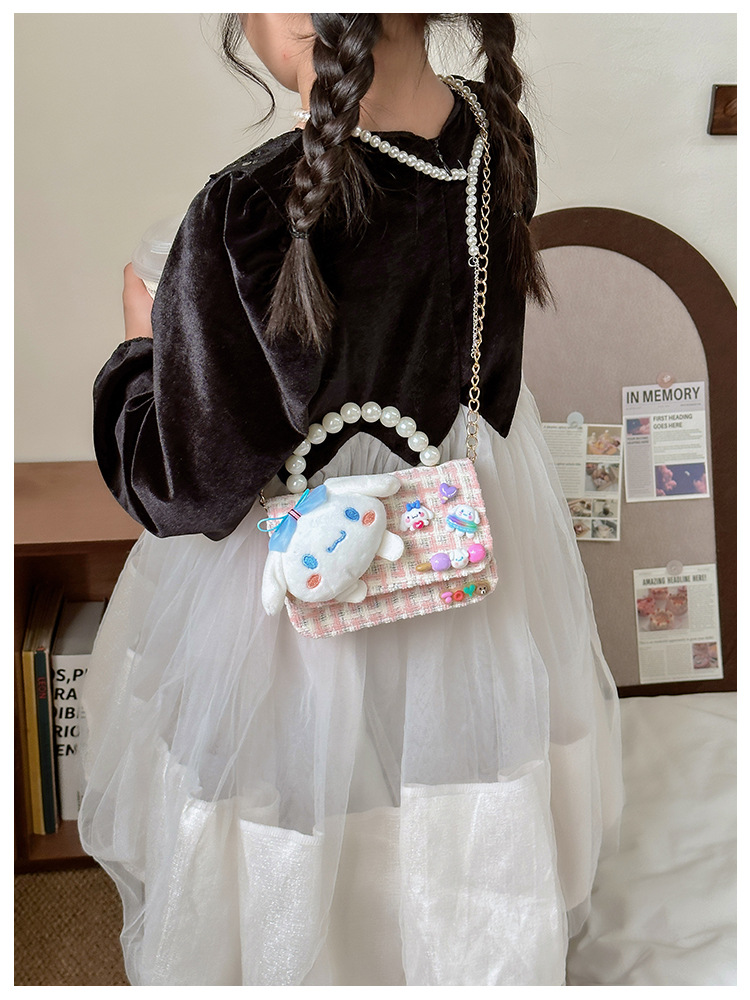 2025 봄 소녀 PU 체인 크로스바디 백, 어린이스러운 귀여운 통기성 미니 동전 지갑, 유치원 데일리 매칭스토어 가기