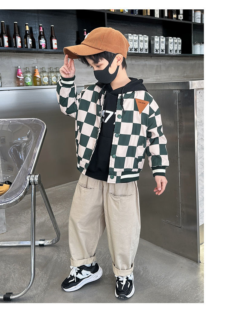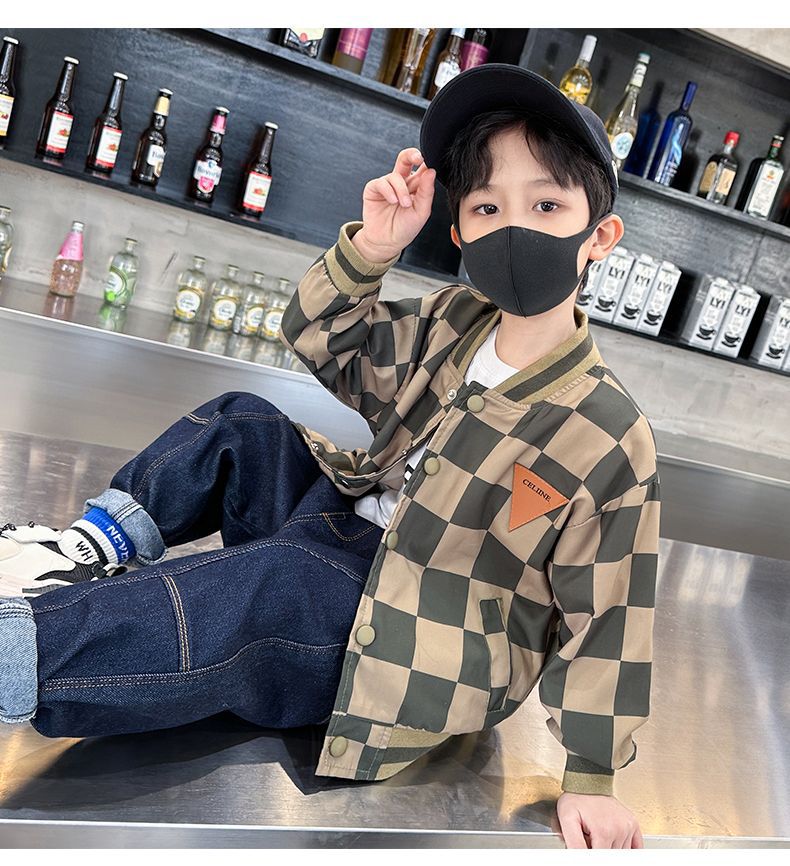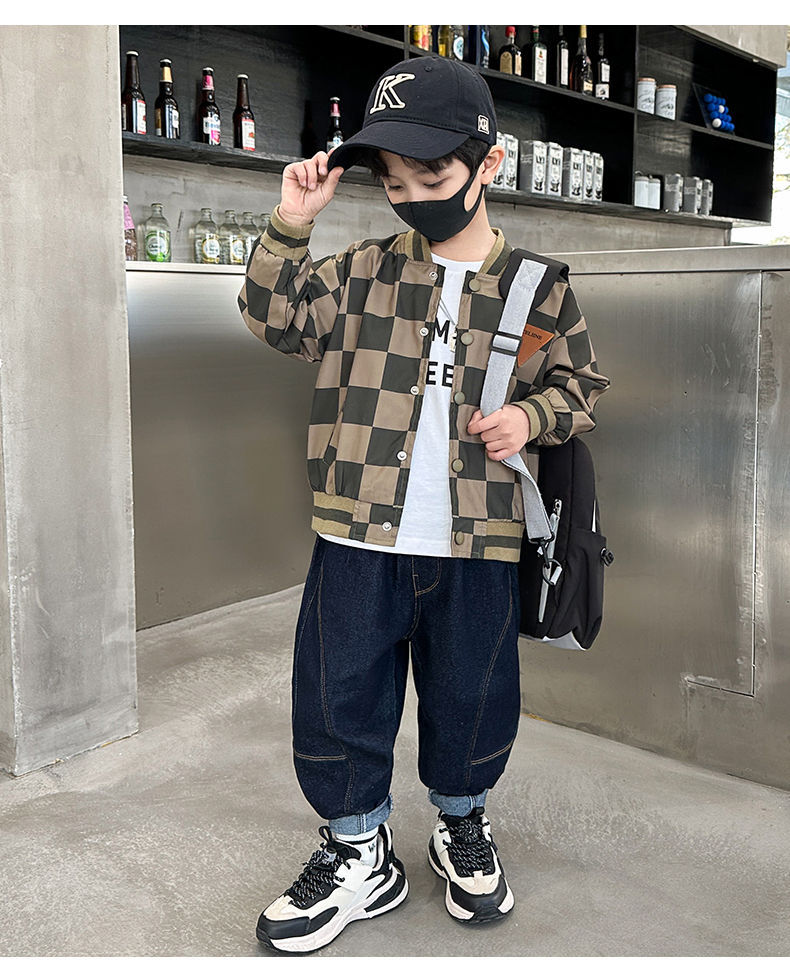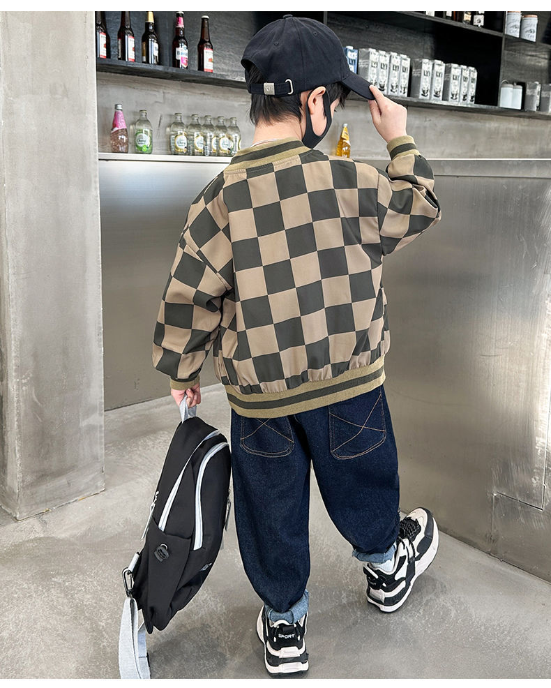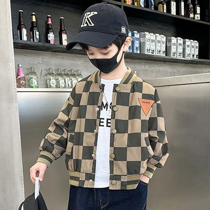 남아 만화 야구복 2024 신상 자켓 봄 가을 남아 재킷 트렌디 아동 패션 체크무늬 상의스토어 가기
