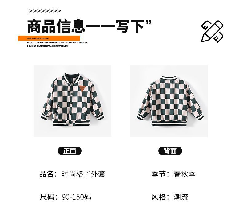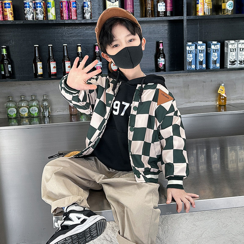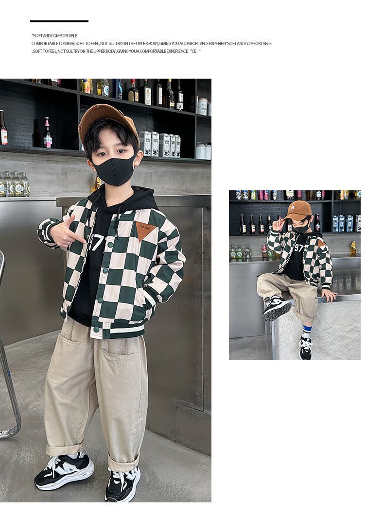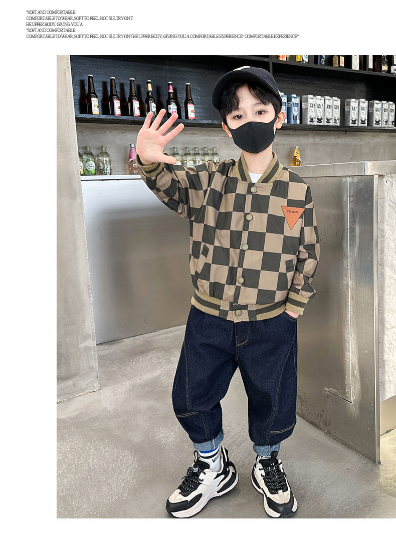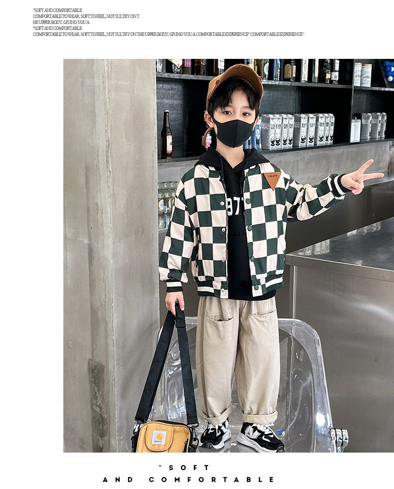 남아 만화 야구복 2024 신상 자켓 봄 가을 남아 재킷 트렌디 아동 패션 체크무늬 상의스토어 가기