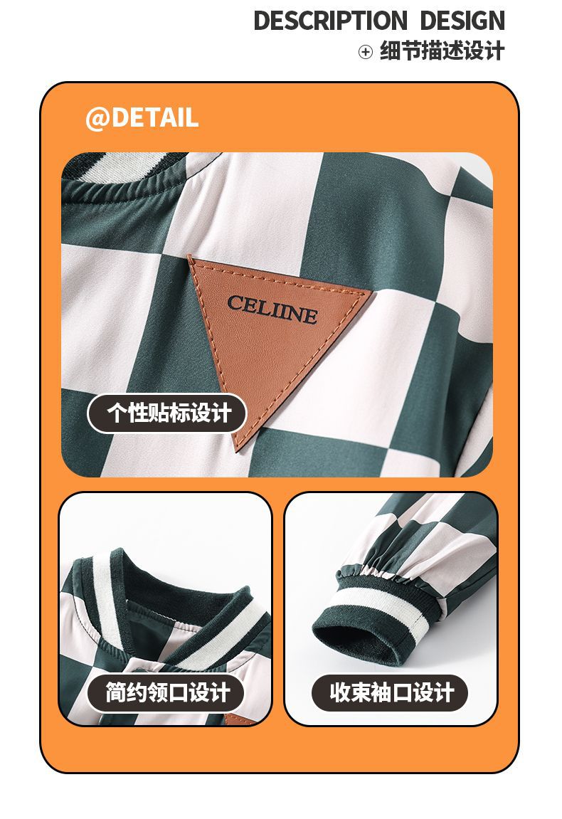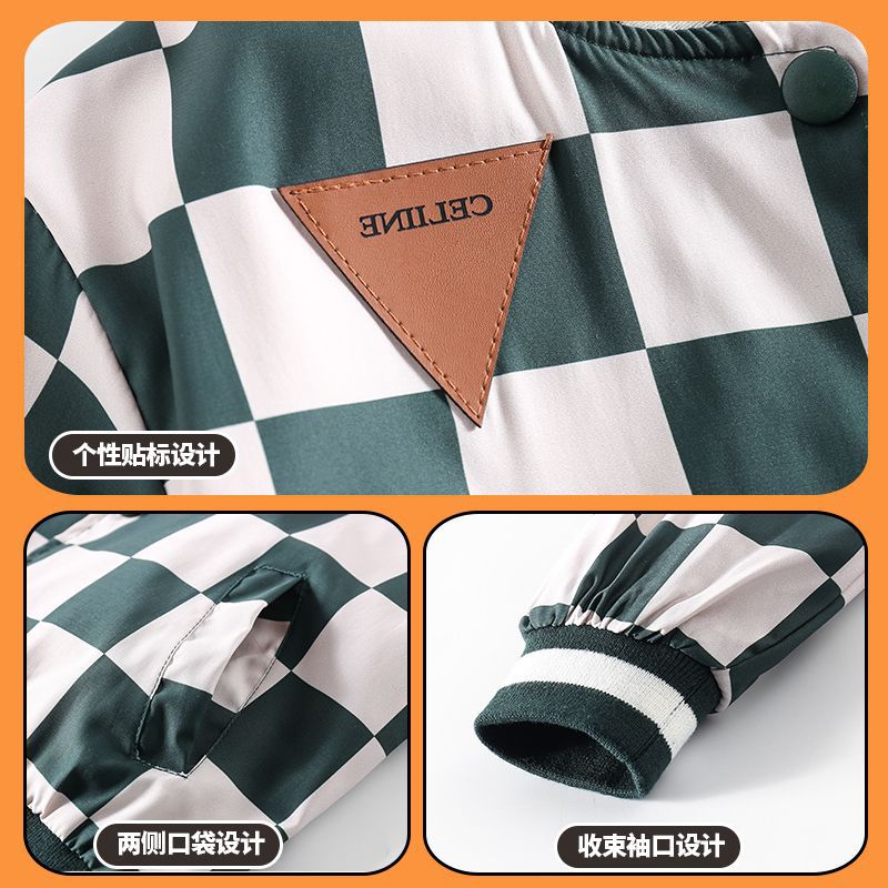 남아 만화 야구복 2024 신상 자켓 봄 가을 남아 재킷 트렌디 아동 패션 체크무늬 상의