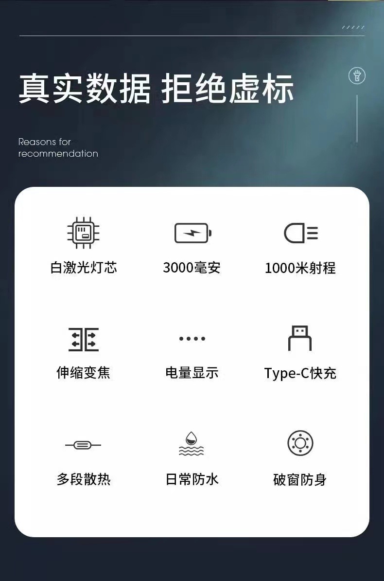 강한 빛 충전식 슈퍼 밝은 작은 크세논 야외 가정용 미니 휴대용 내구성 원격 스포트라이트 손전등