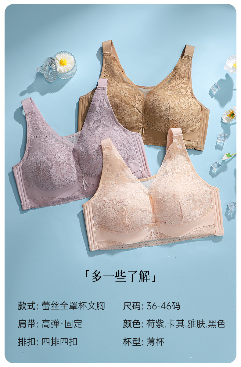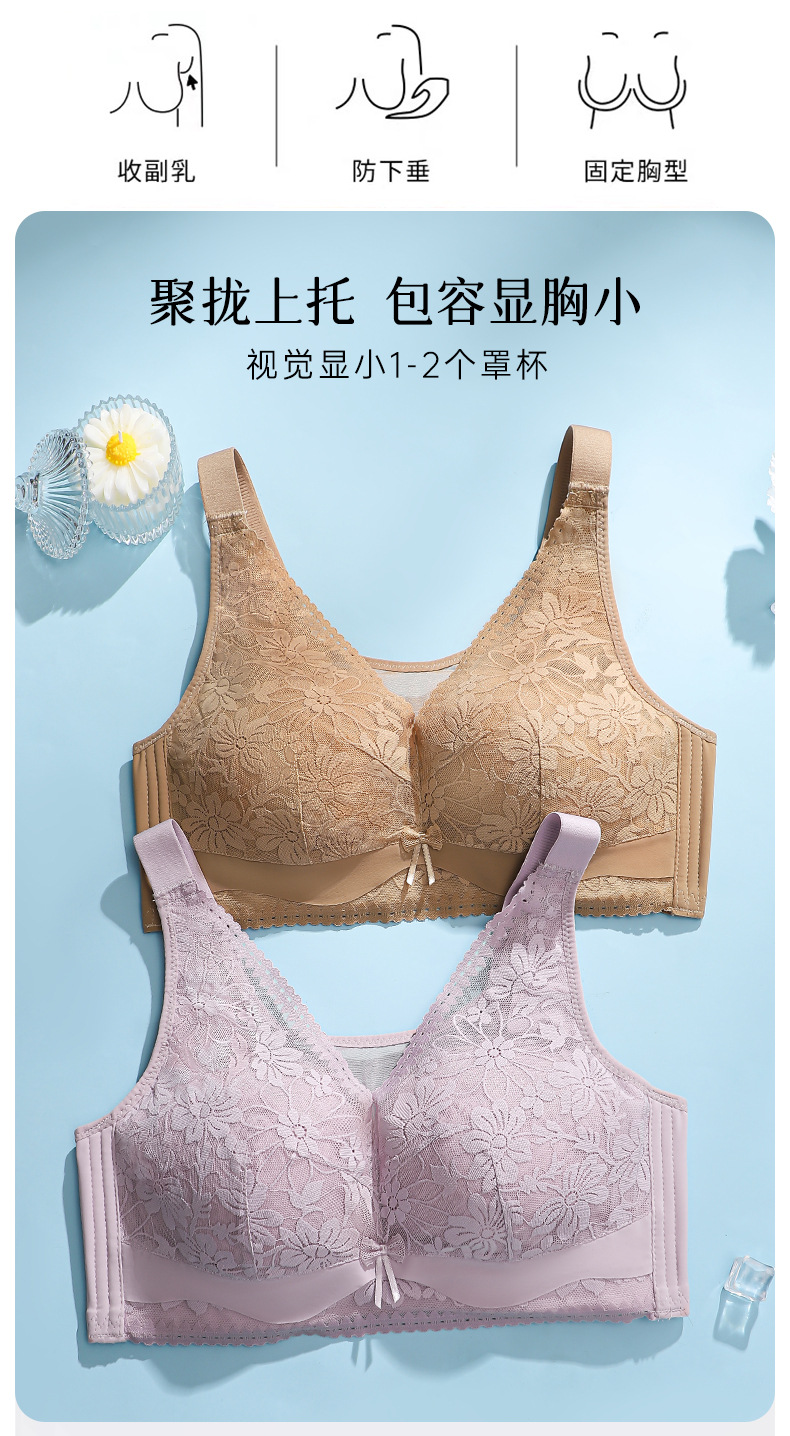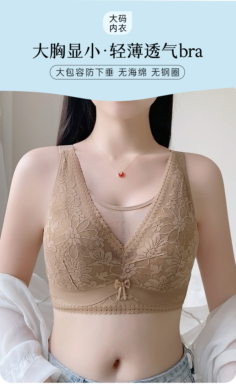 품질 플러스 사이즈 브라 무테 울트라 얇은 비 스폰지 속옷 큰 가슴 작은 레이스 칼라 처짐 방지 통기성스토어 가기