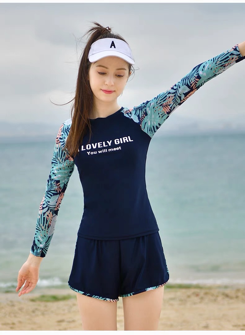 여아 수영복 중간 및 큰 어린이 보수 분할 선 스크린 긴 소매 바지 전문 훈련 세트 학생 수영 세트 여름스토어 가기