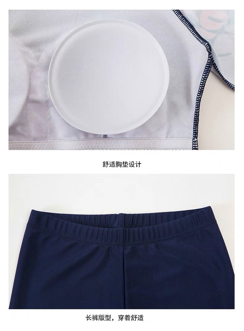여아 수영복 중간 및 큰 어린이 보수 분할 선 스크린 긴 소매 바지 전문 훈련 세트 학생 수영 세트 여름