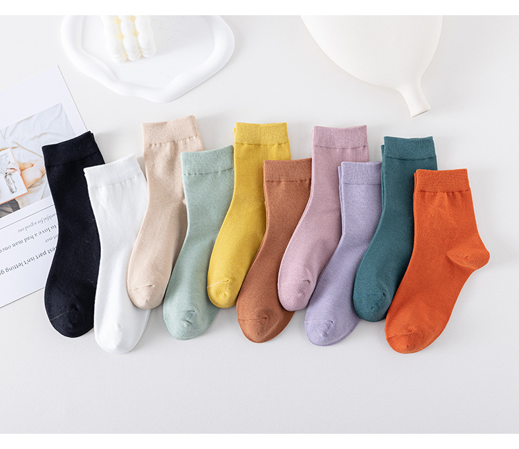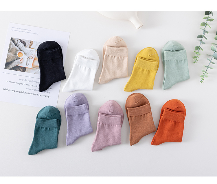 필링 방지 중간 길이 양말 단색 여성 양말 신장 긴 벨벳 면 양말 편안한 모든 경기 면 양말 4 계절 착용 조수 양말스토어 가기