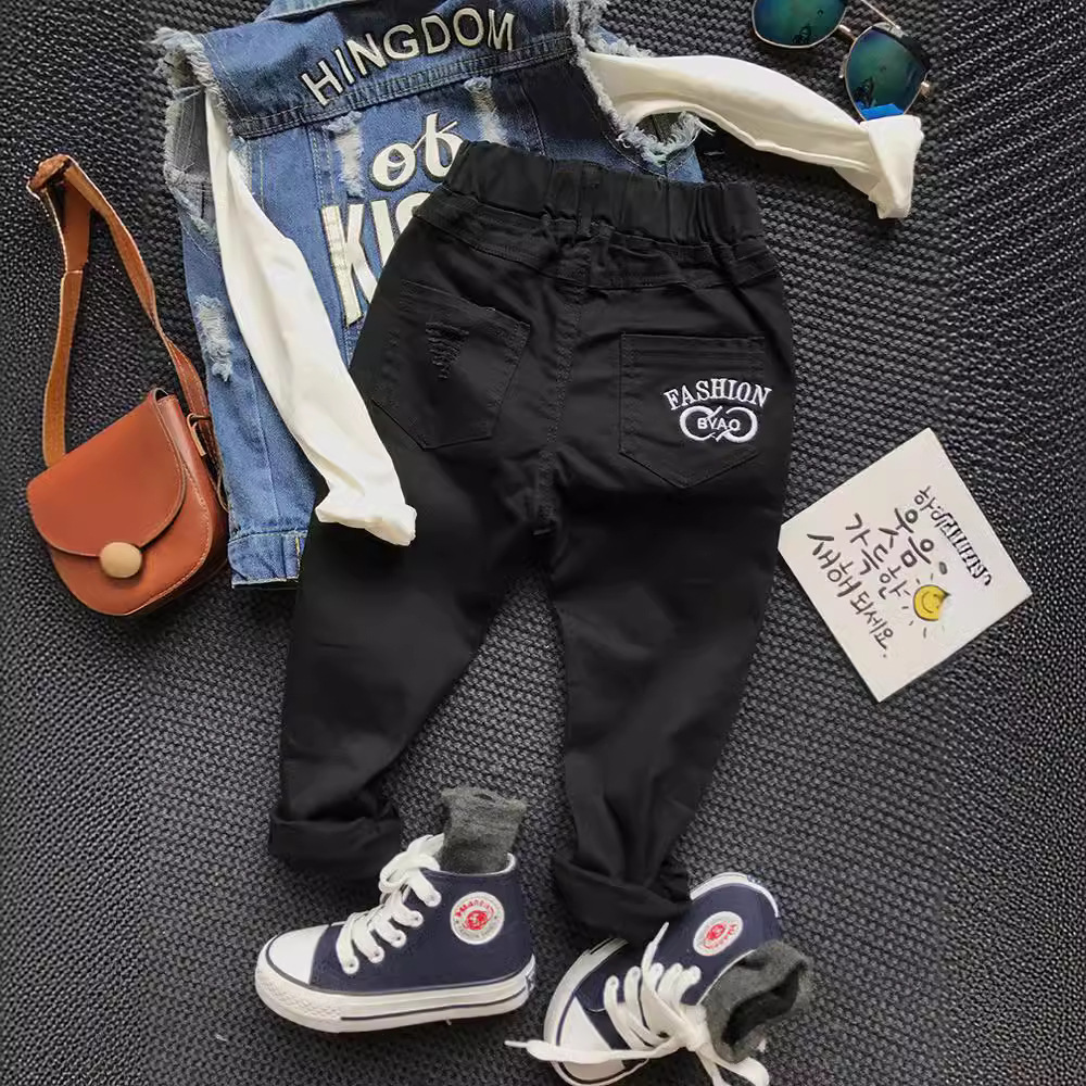 소녀 매직 팬츠 2024 봄과 가을 청바지 어린이 봄 소년 외부 착용 중소형 어린이 흑백 연필 바지스토어 가기