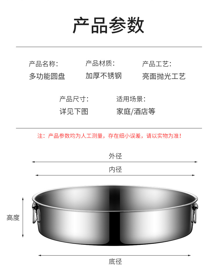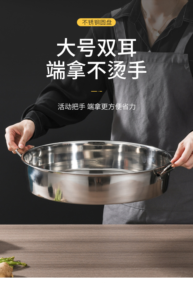 스테인리스 찜통 밥그릇 찜기구 직선형 평평한 바닥 냉피 롱롱 과자 대형 원형 접시 깊은 접시 두꺼운 내구성
