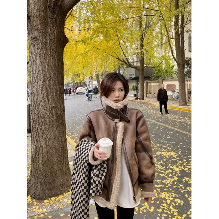 양털 일체형 여성용 양털 코트 2025 신상 겨울 스웨이드 바이커 재킷 양털 면 코트스토어 가기