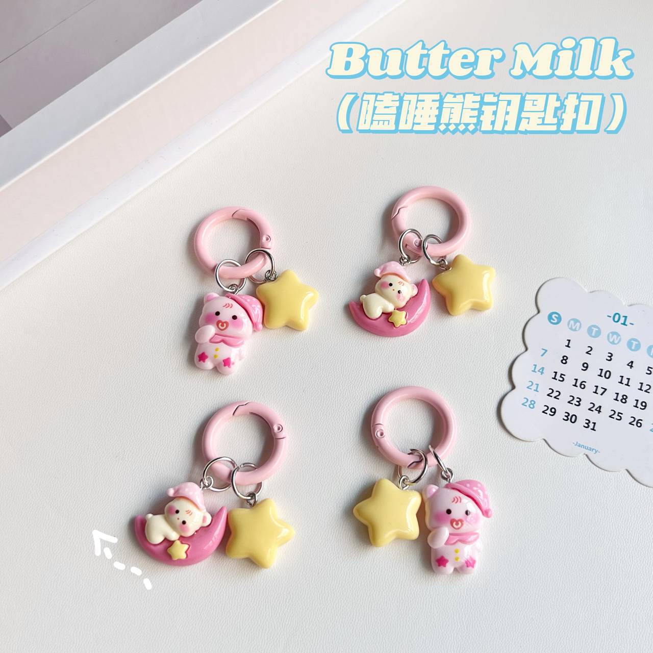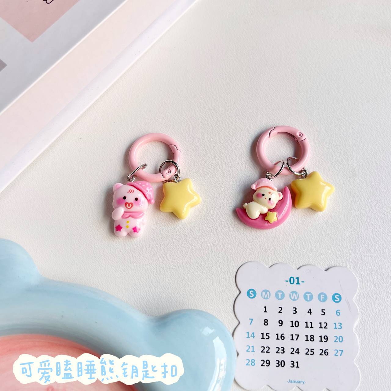 졸린 곰 열쇠 고리 인 소녀 학생 라운드 버클 소녀 가방 여아 가장 친한 친구 선물 펜던트 만화 매달려 장식품스토어 가기