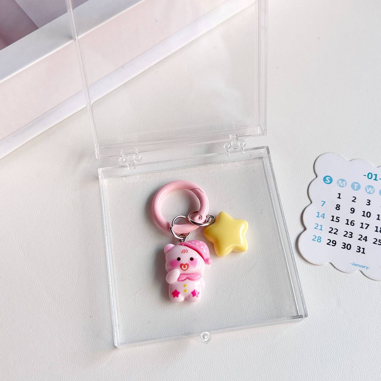 졸린 곰 열쇠 고리 인 소녀 학생 라운드 버클 소녀 가방 여아 가장 친한 친구 선물 펜던트 만화 매달려 장식품