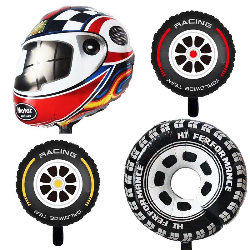 국경 간 새로운 F1 레이싱 포뮬러 테마 알루미늄 필름 풍선 헬멧 레이싱 타이어 흑백 깃발 풍선스토어 가기