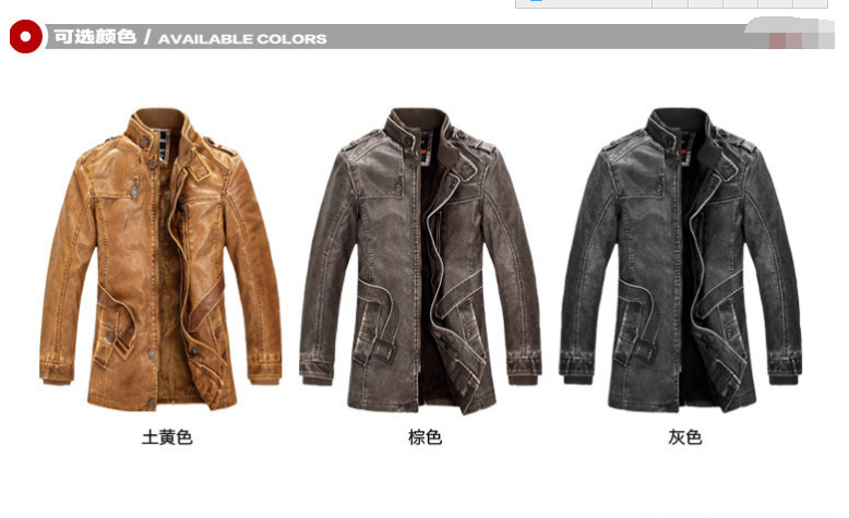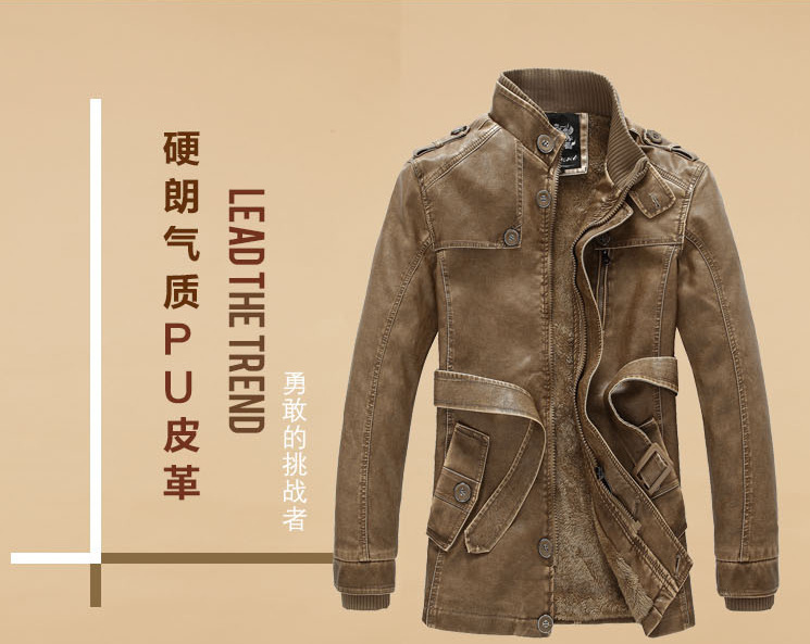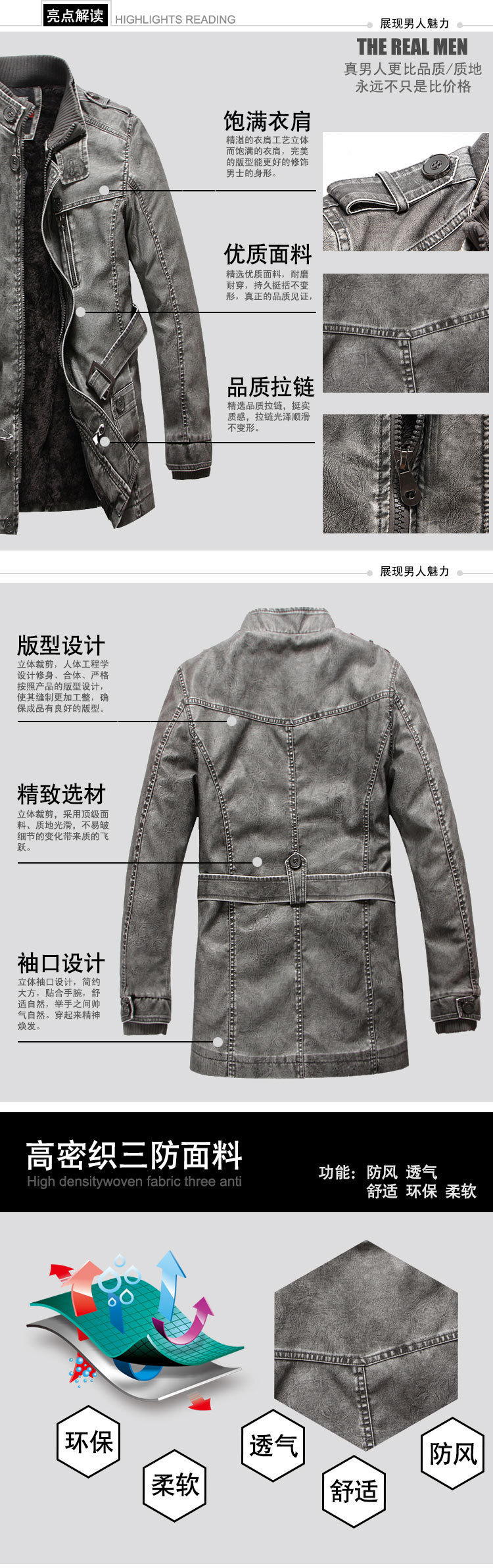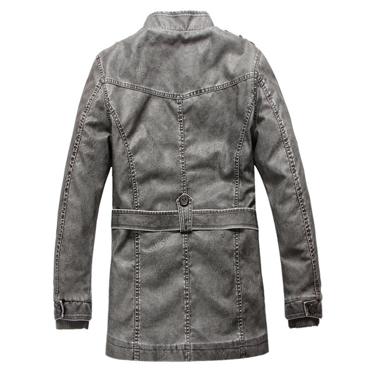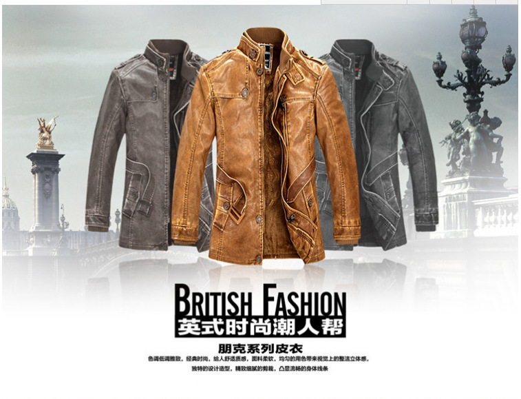스탠드 칼라 기모 가죽 남자의 중간 길이 기모 가죽 자켓 모조 가죽 빈티지 코트 슬림 PU 가죽 도매 세대