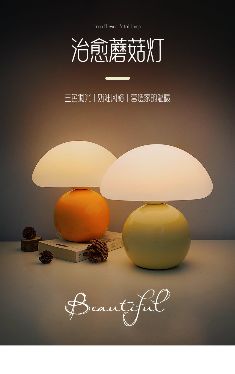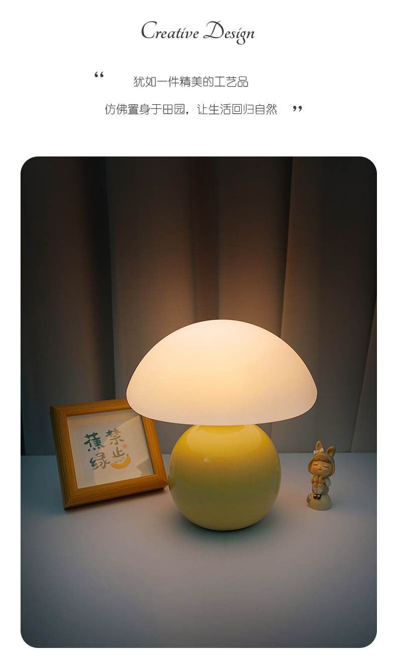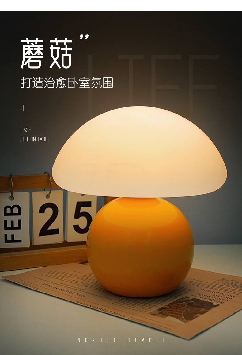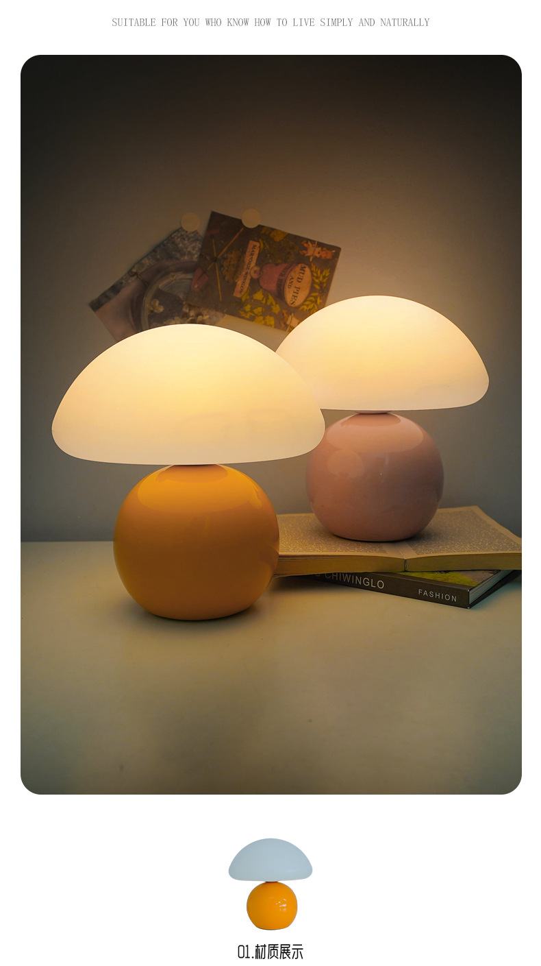 침실 침실 램프 고급 크림 스타일 버섯 테이블 램프 장식 중세 유약 분위기 야간 조명 연구스토어 가기