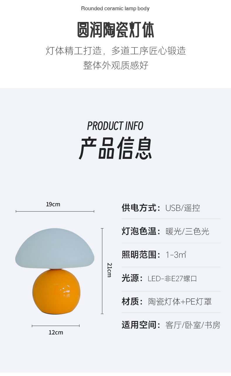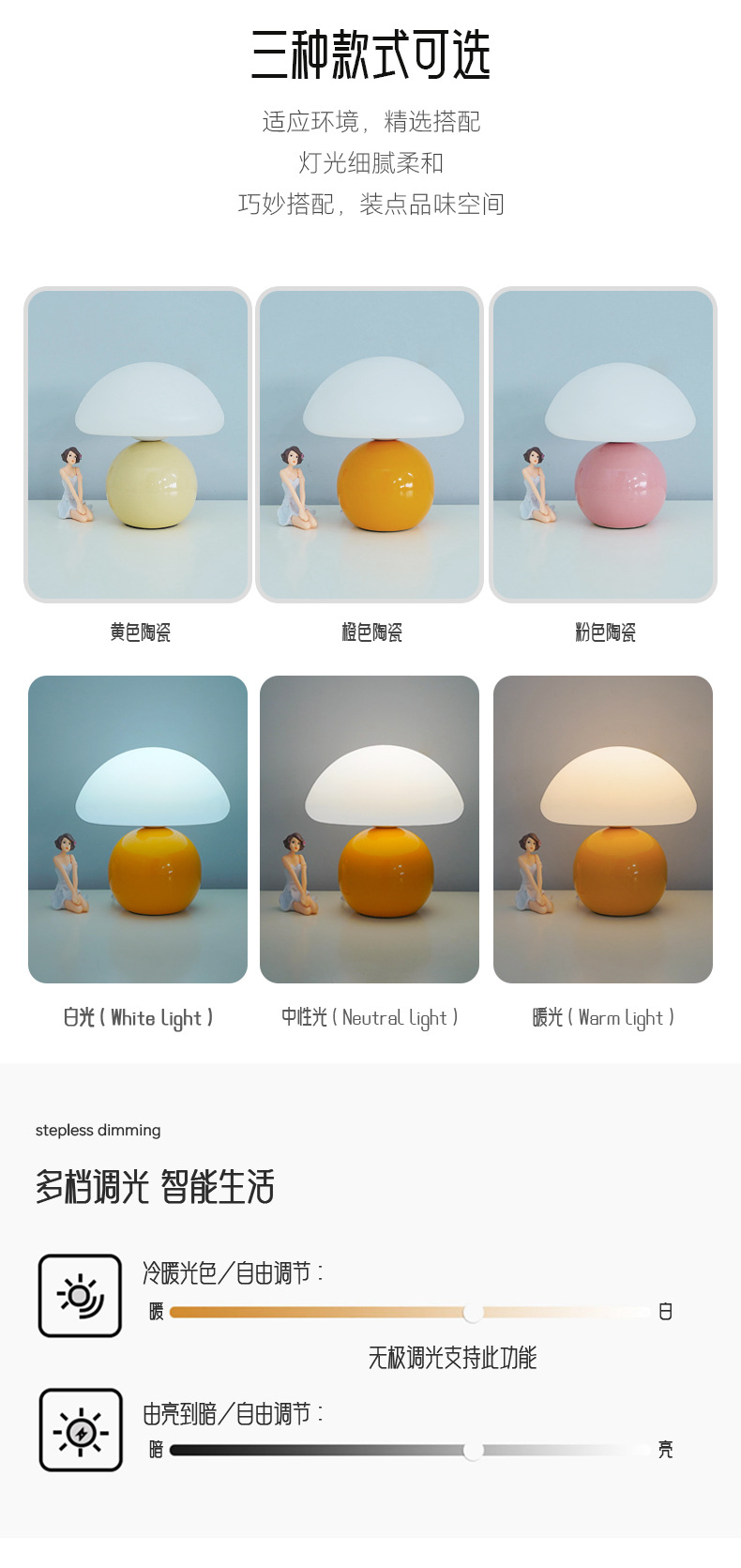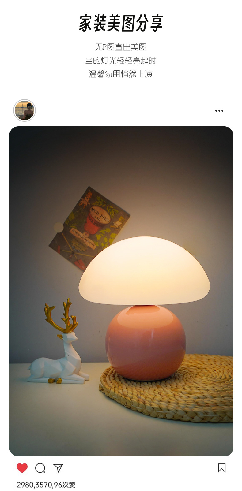 침실 침실 램프 고급 크림 스타일 버섯 테이블 램프 장식 중세 유약 분위기 야간 조명 연구스토어 가기