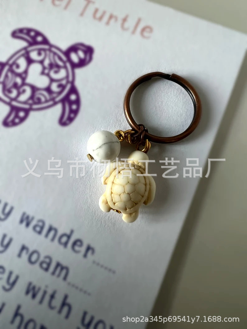국경 간 여행 거북이 열쇠 고리 3 차원 거북이 아이보리 청록색 키 체인스토어 가기